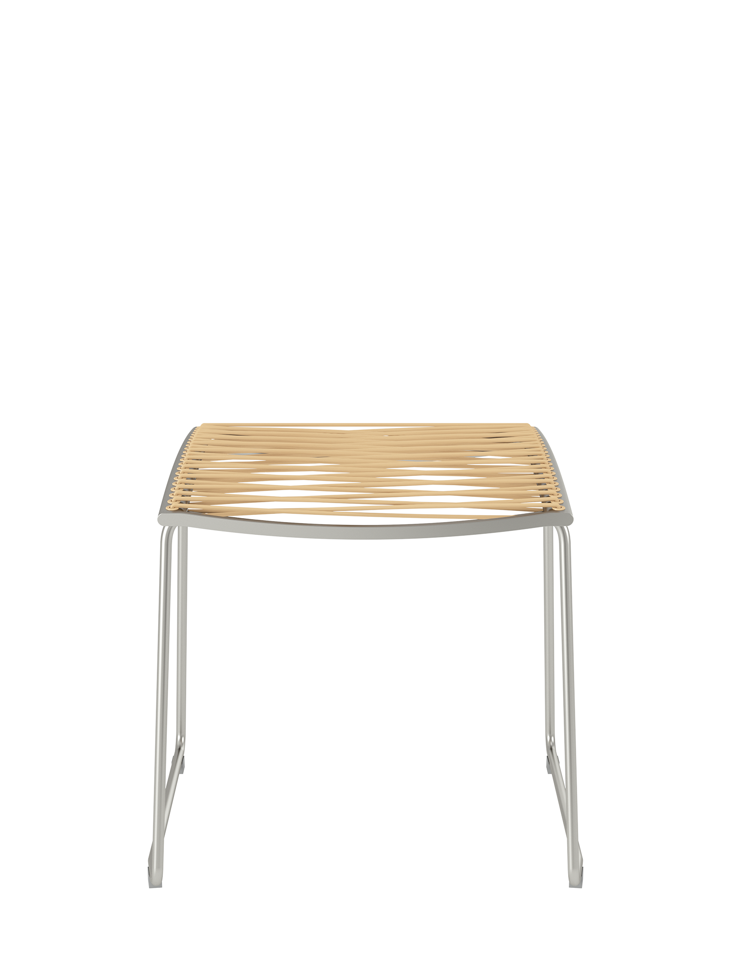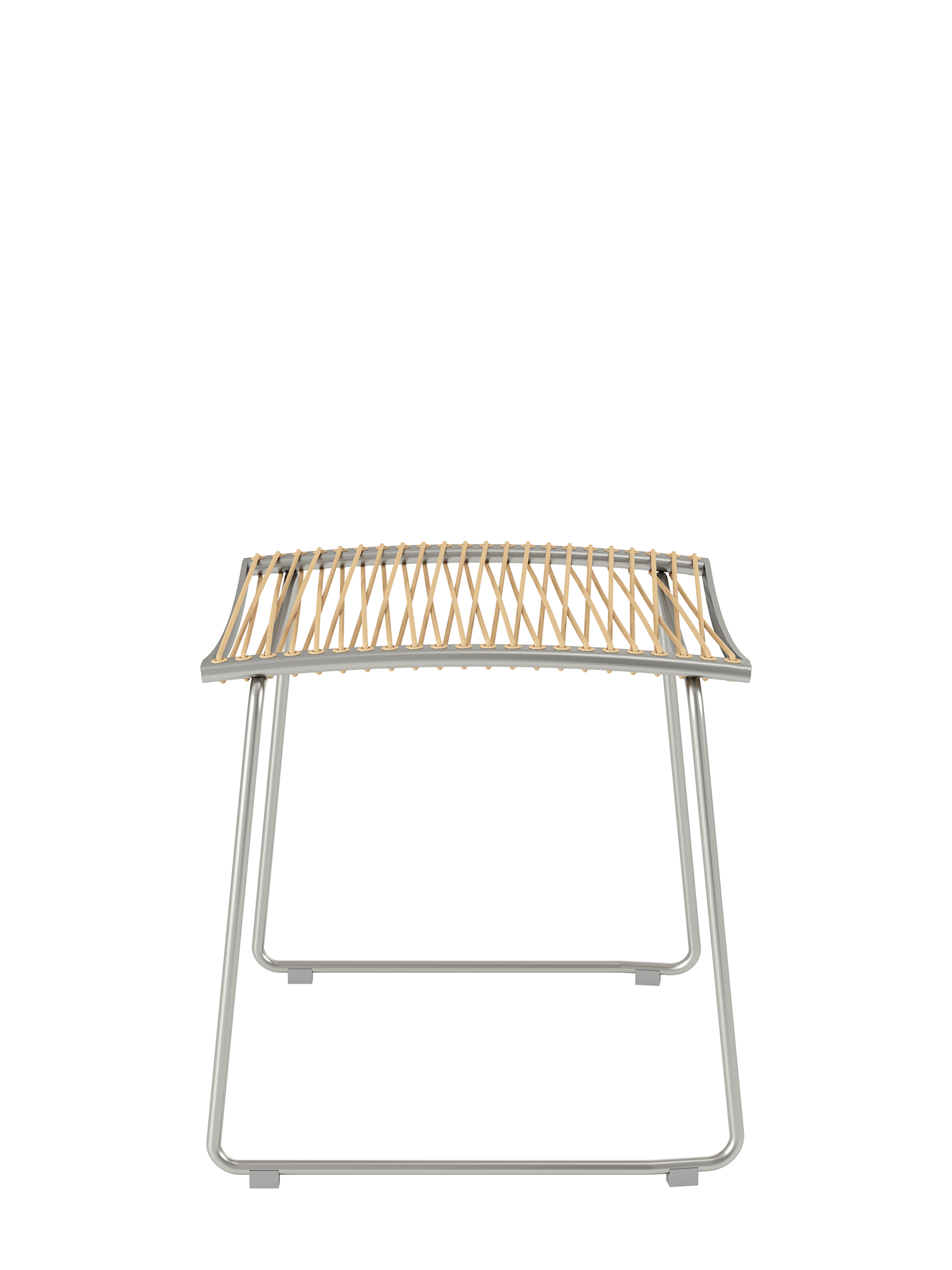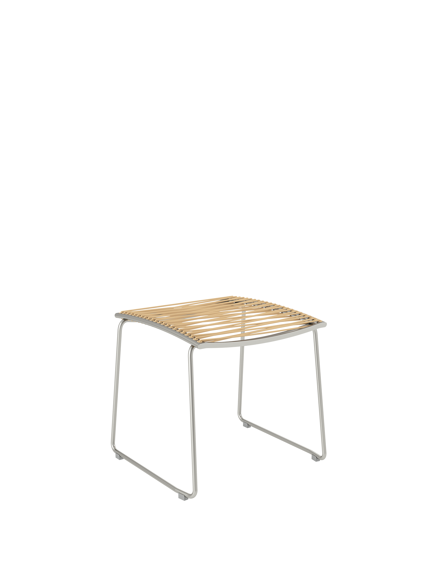 The matching footstool for the chairs and highbacks of the Pan series has a frame of stainless steel with a covering of permanently elastic fibre. The stool is easily set up and comfortably relaxes the legs.