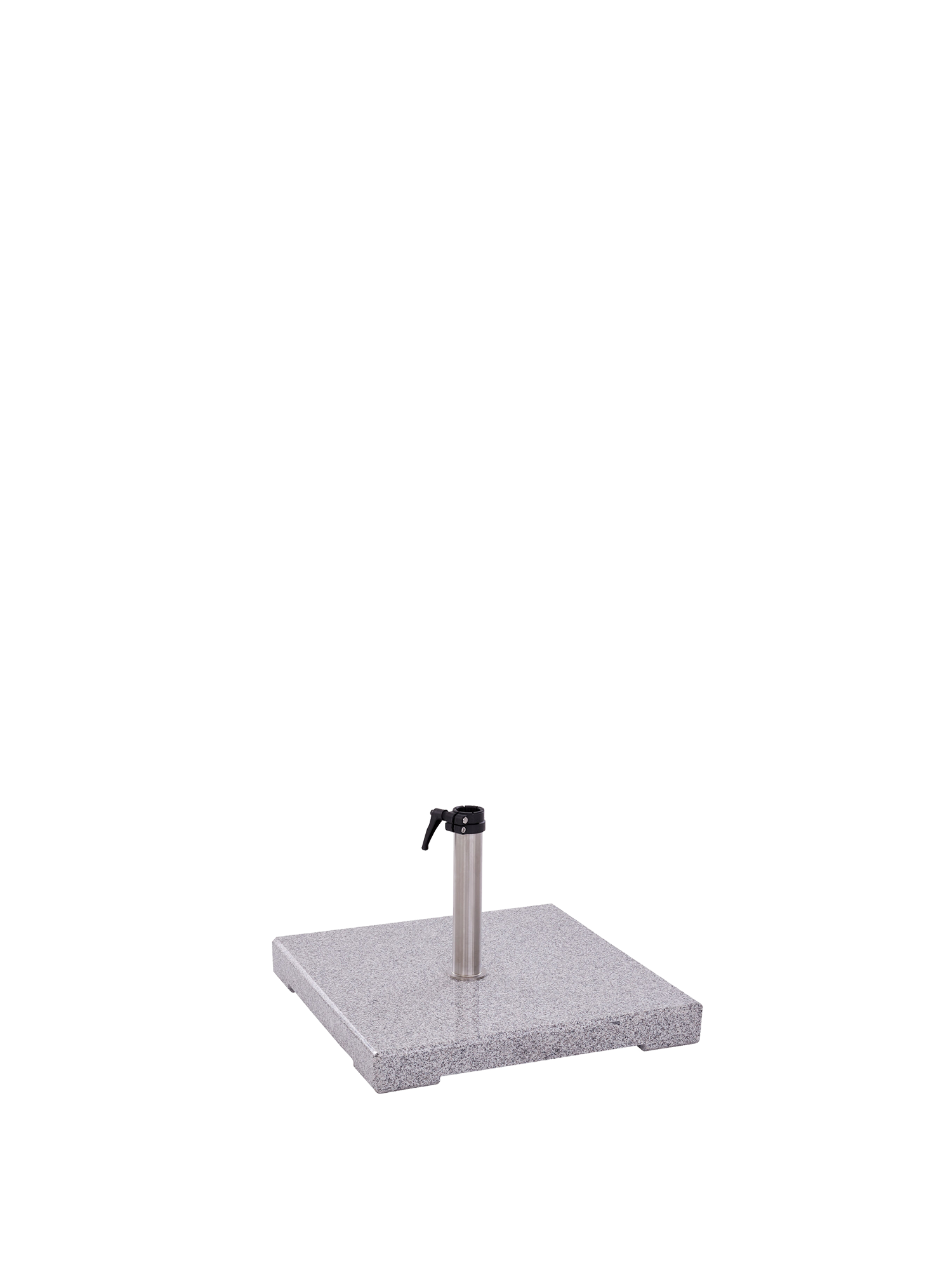 Dimensions: width 70 x depth 70 x height (including parasol tube) 45 cm. Thickness of plate: 90 mm, weight: 90 kg