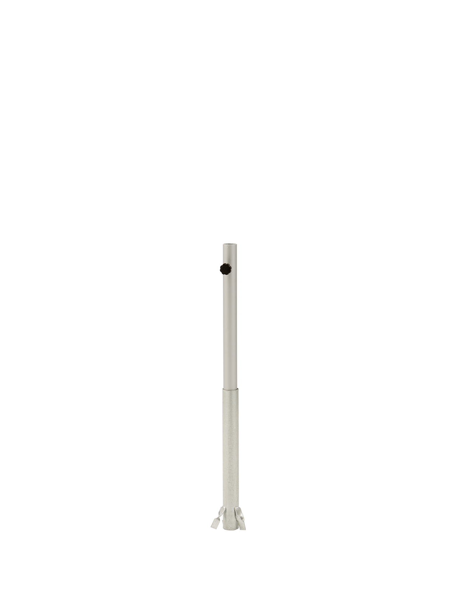 A ground socket is a good solution for permanently positioned parasols. It is anchored into the ground with concrete and thus ensures maximum hold. In winter the support sleeve can be removed and the aperture closed at ground level with a fitted cover. All ground sleeves are of galvanised steel.