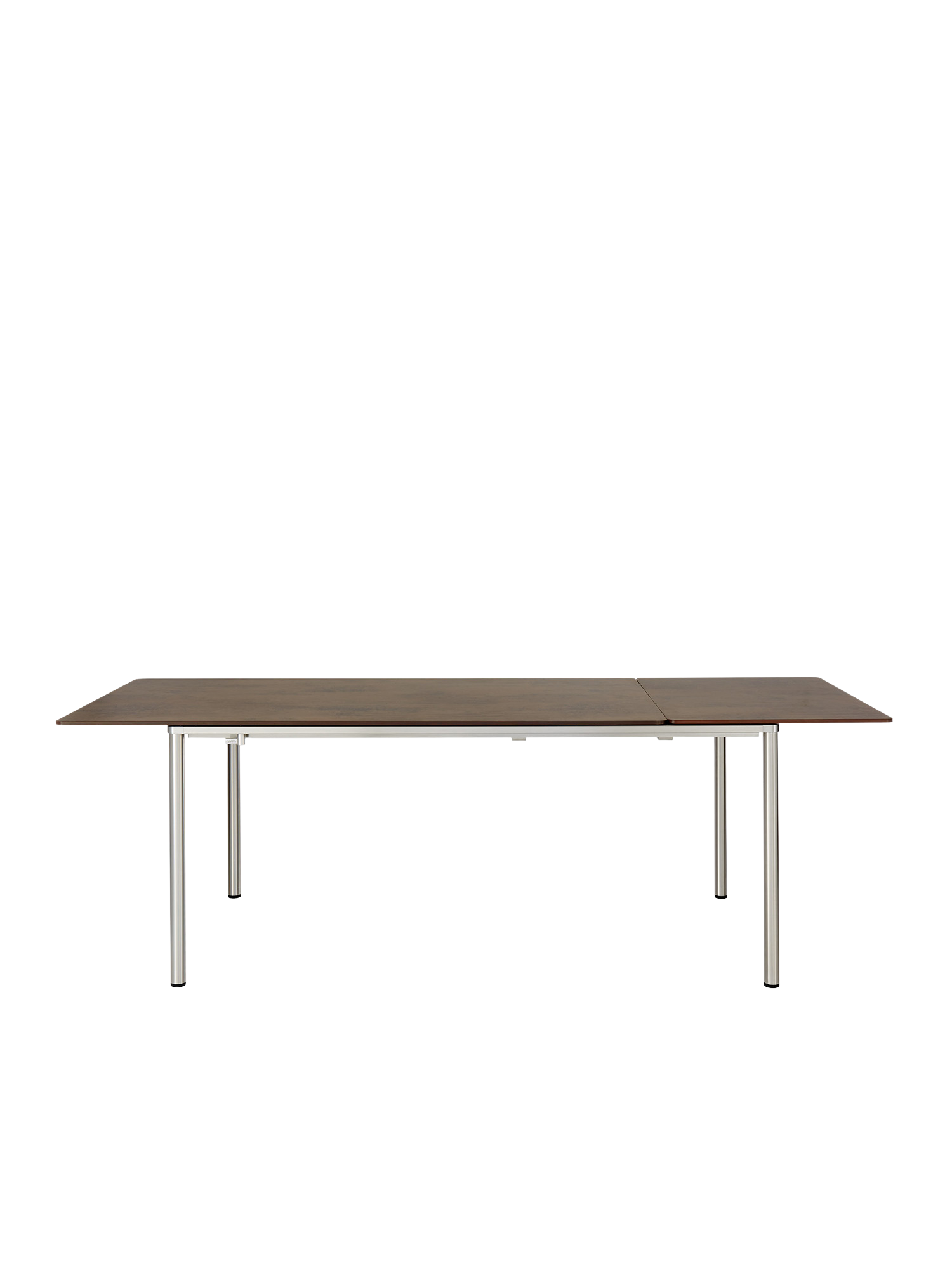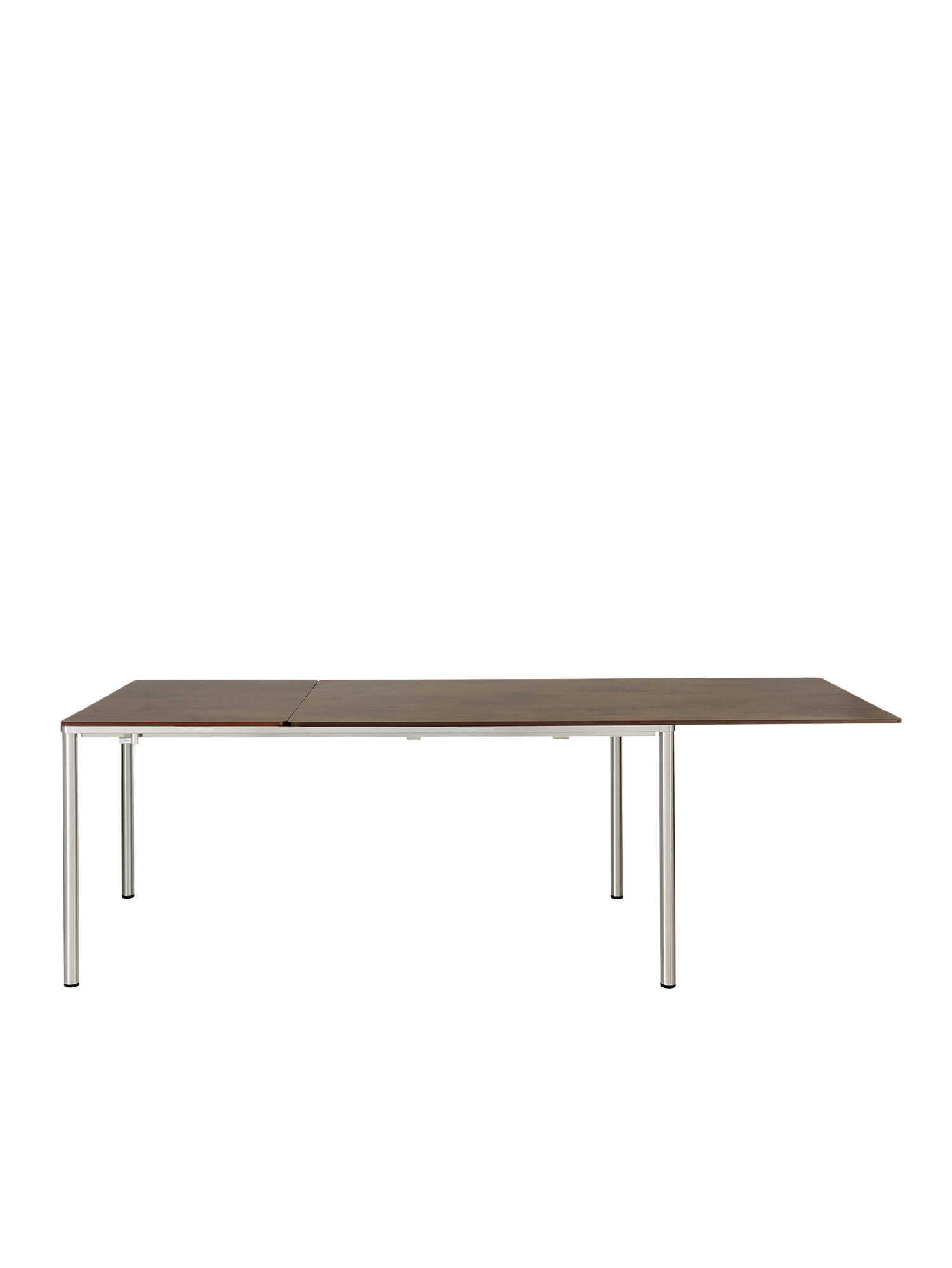 The top of the extending table, under which the additional section is mounted, can be slid out as a whole and augmented.
