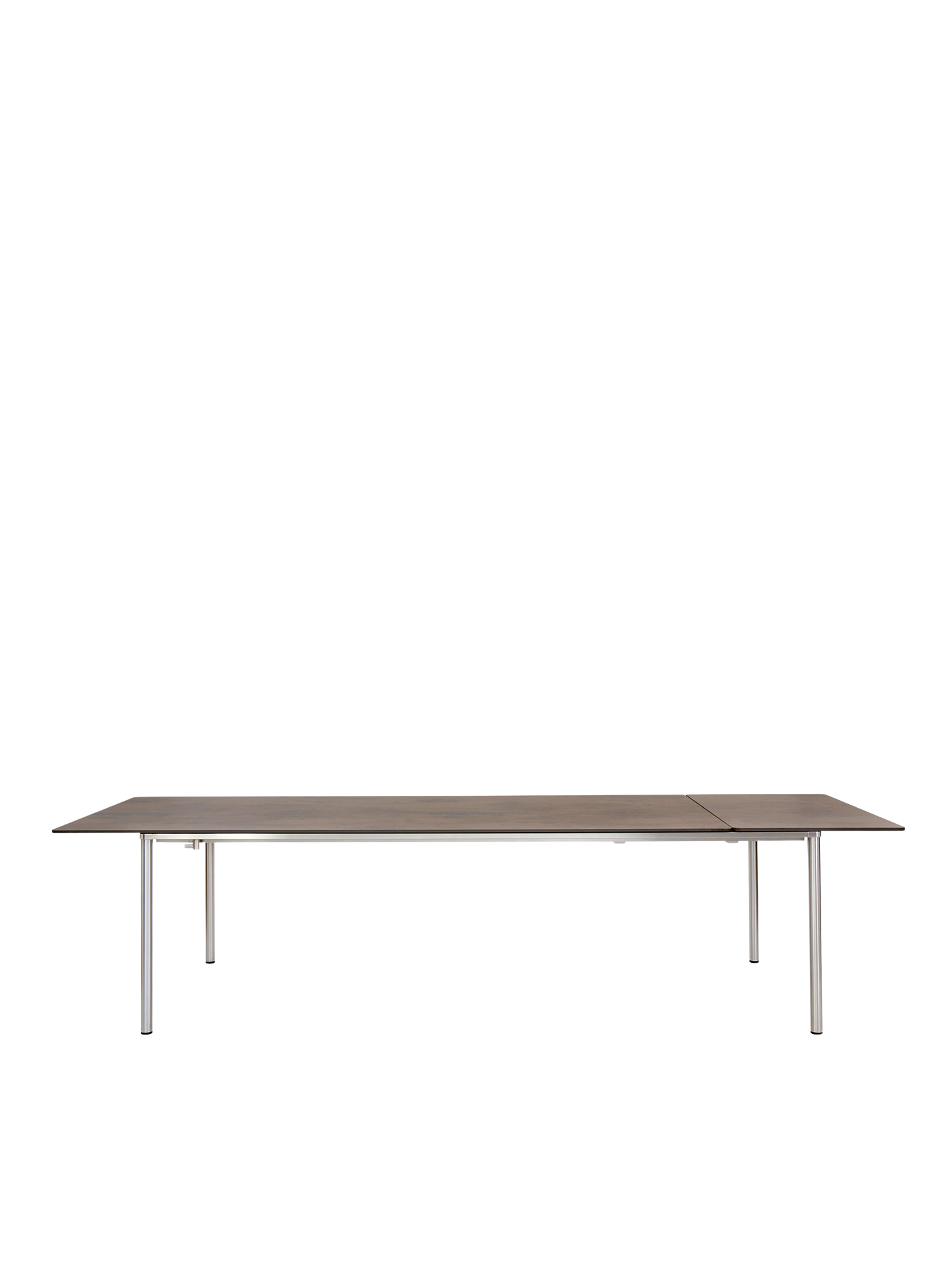 The top of the extending table, under which the additional section is mounted, can be slid out as a whole and augmented.