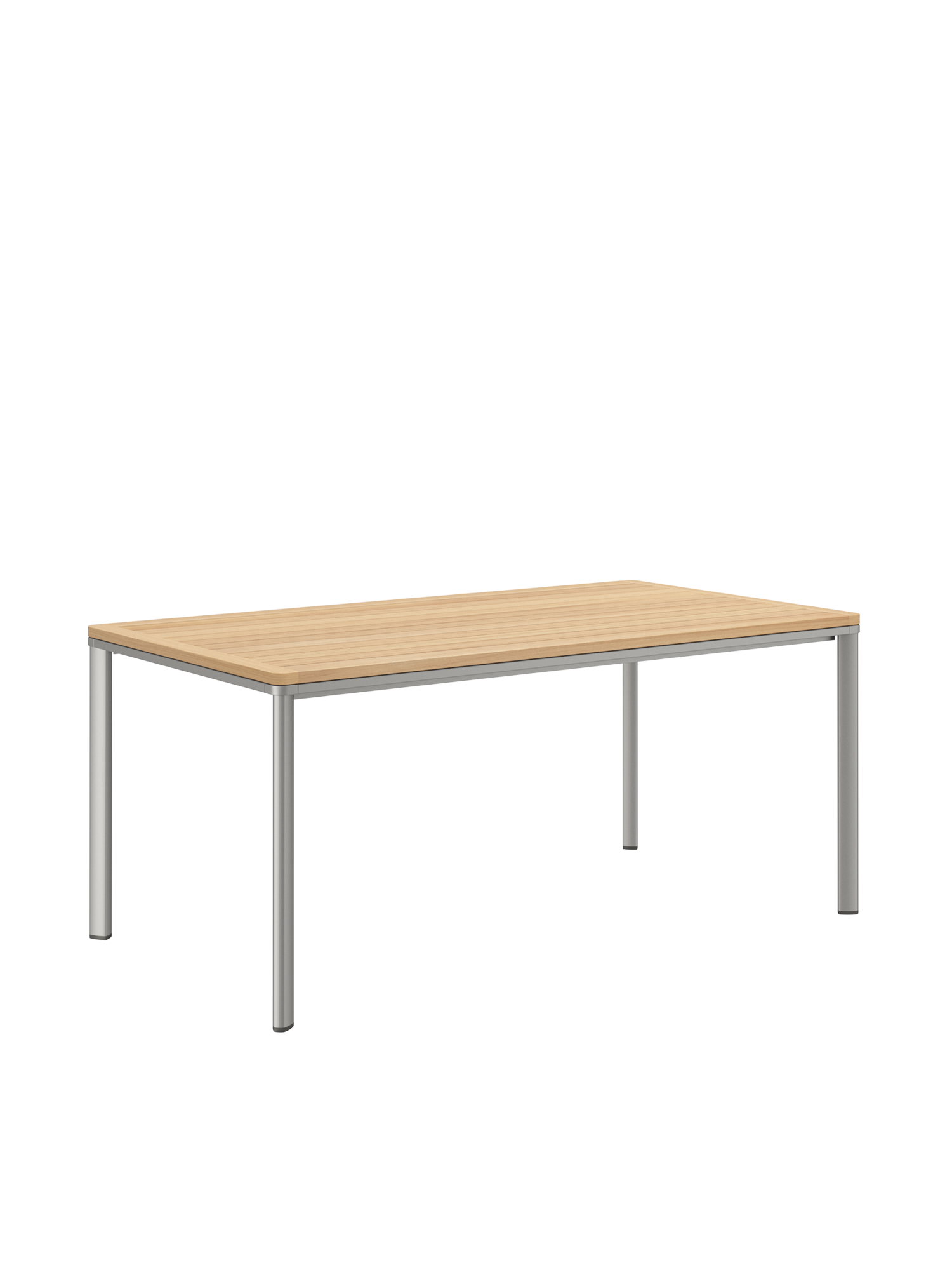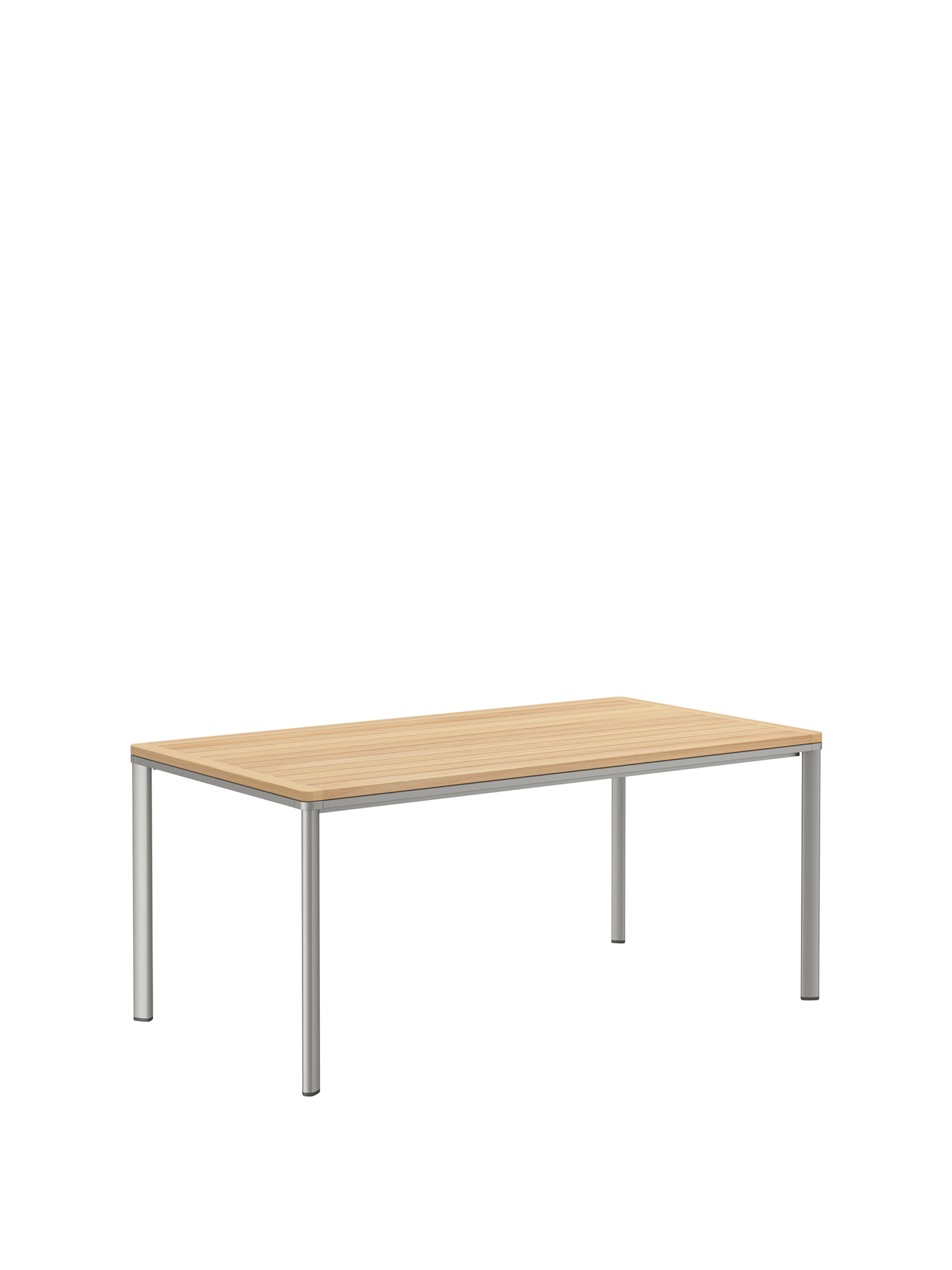 The gently curved all-round frame made of anodised aluminium supports a top made of high-quality teak. The weatherproof material combination makes this Portland table an elegant combination with selected furniture from the Monterey Silk collection – for example, a bench, two armchairs and two recliners could be placed around the table, which offers space for up to six people.