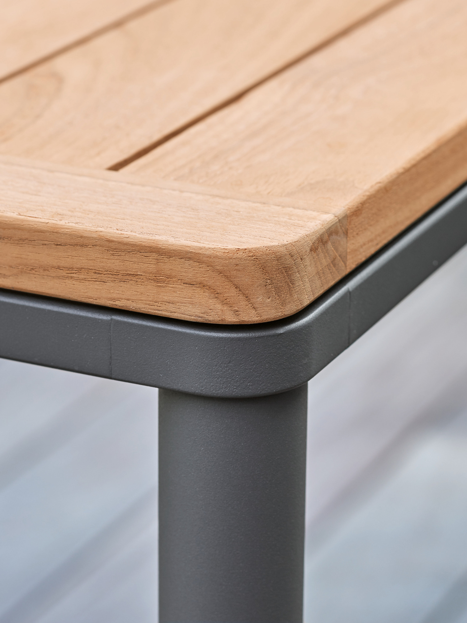 A gently curved all-round frame characterises the design of the Portland tables. They are the elegant focal point of every gathering. The generously dimensioned table tops made of high-quality teak rest on four slender legs. With a powder-coated stainless steel frame, they are a stylish companion to chairs from our modern series.