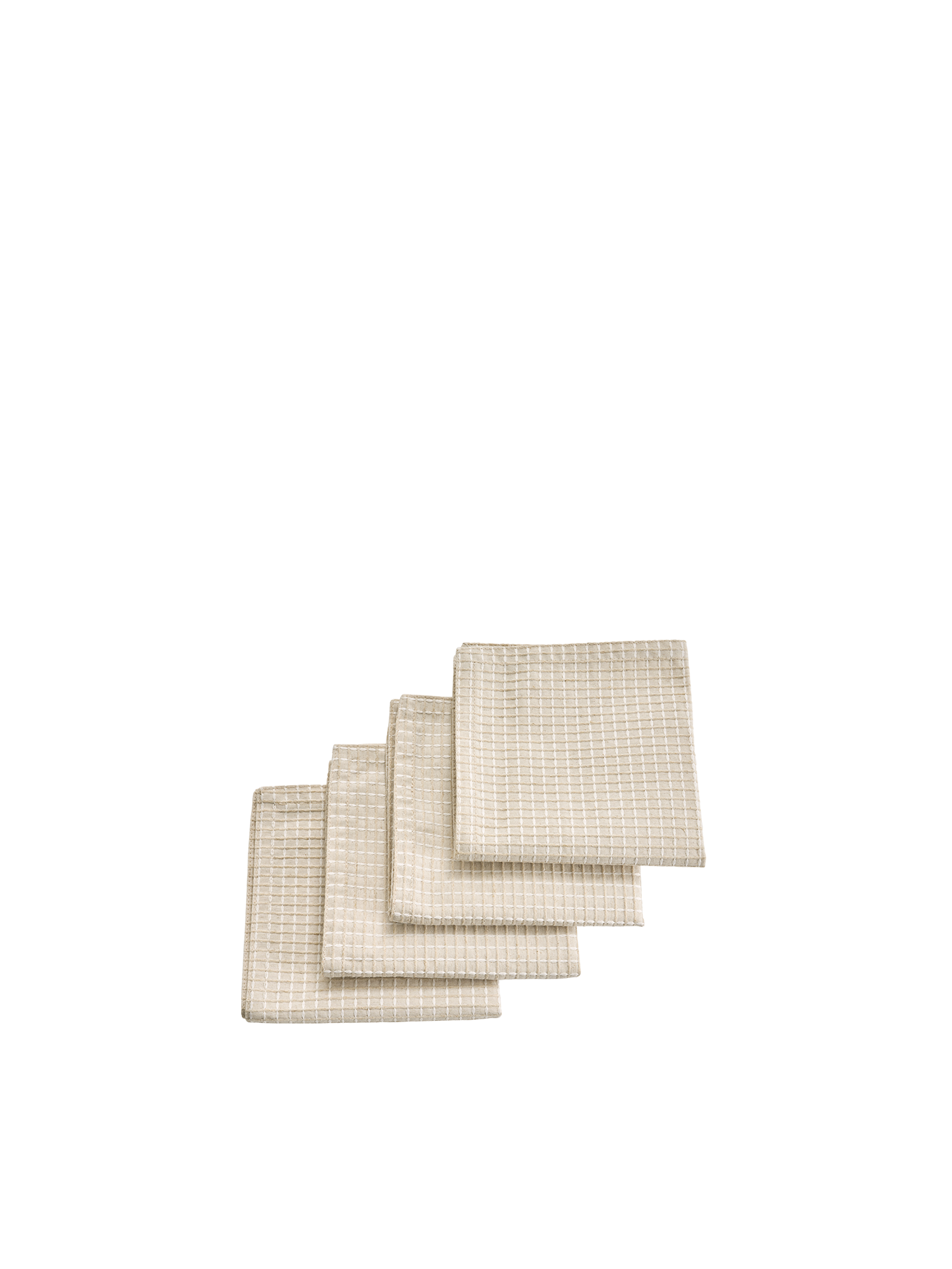 The Quadrado napkins, manufactured in Europe and available in a set of 4, interpret table culture in a sustainable way – being suitable for a gentle wash cycle at 30 degrees, and being reusable. The square pattern not only gives the napkins their name, but also adds a stylish accent. We recommend not leaving the napkins permanently outside.