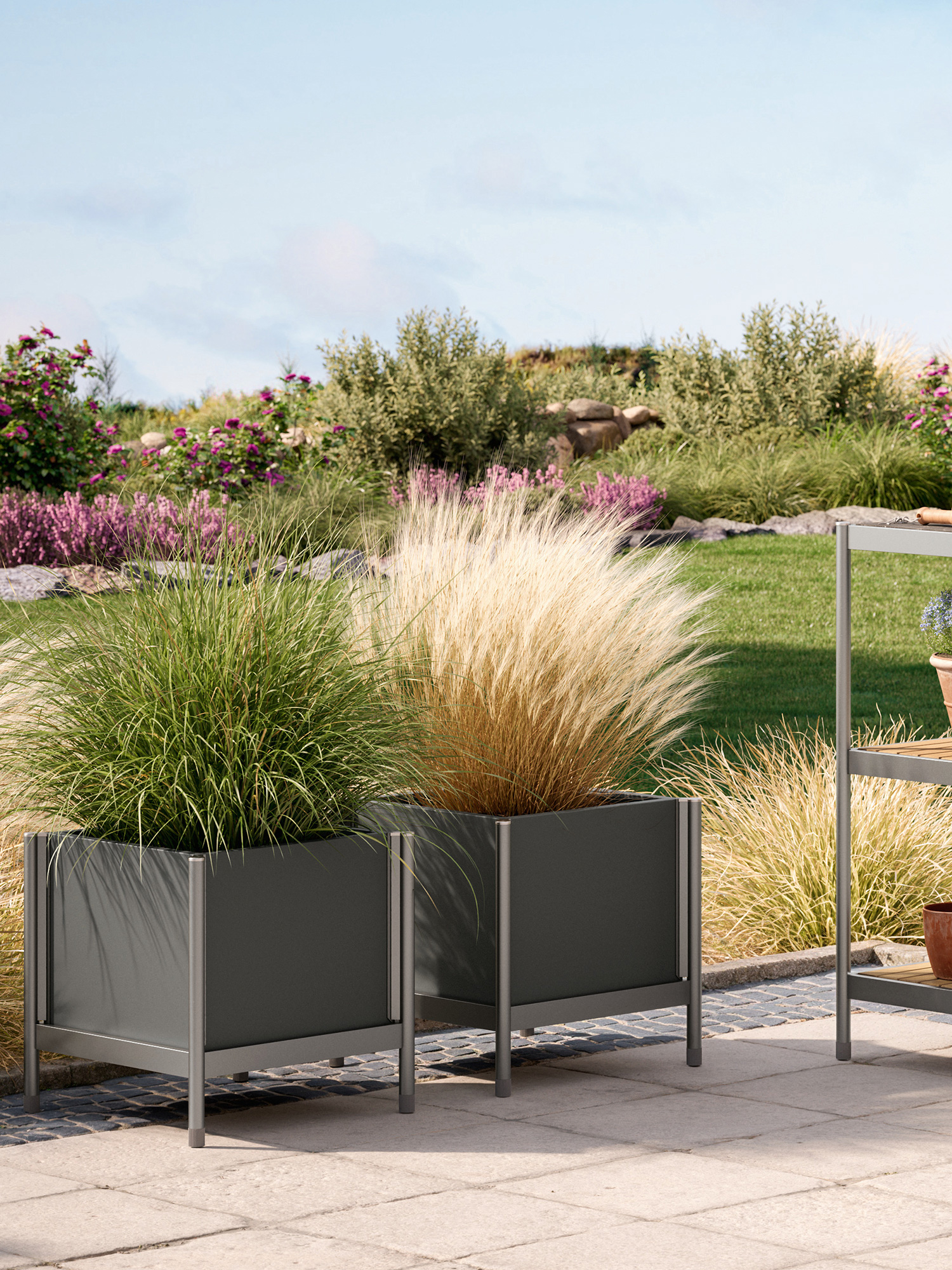 The modular Rana collection includes high-quality shelving in two sizes, a raised bed, and a planter of corresponding style. Perfectly designed, with coordinated dimensions and well thought-out functionality, the individual elements also complement each other as an ensemble, create useful storage space and form decorative arrangements.