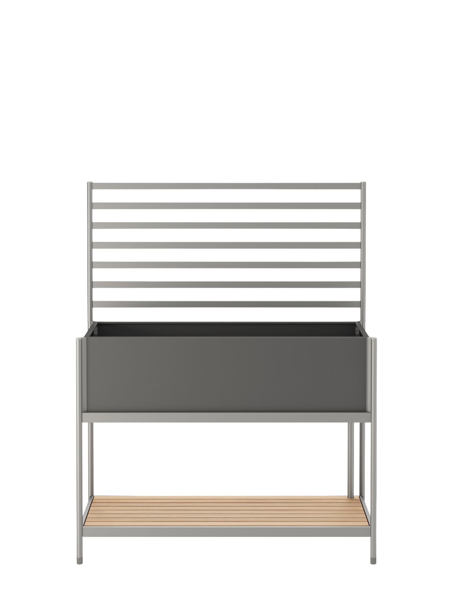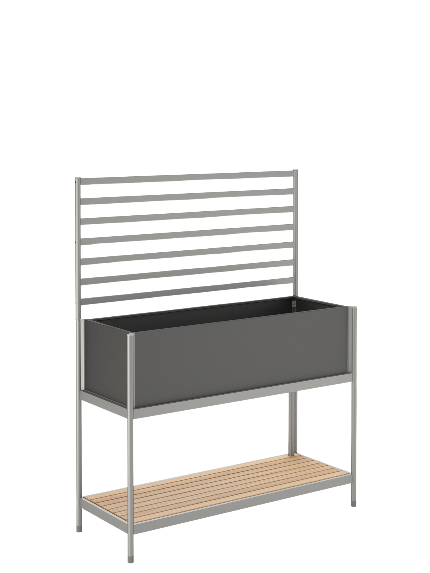 For climbing vegetables such as cucumbers, courgettes and tomatoes or flowering climbing plants such as clematis, sweet pea and passionflower, the optional climbing element made of anodised aluminium is the perfect starting point. It is simply attached to the rear uprights of the Rana raised bed. With robust struts, it supports lower climbing plants and also functions as a room-divider and natural privacy screen.