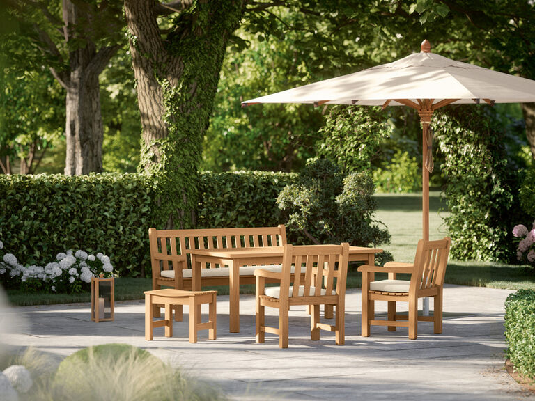 As diverse as our shapes and styles may be, so too is our wide range of premium materials for furniture, parasols, and accessories – from precious plantation teak and lightweight aluminium to high-quality synthetic weave.