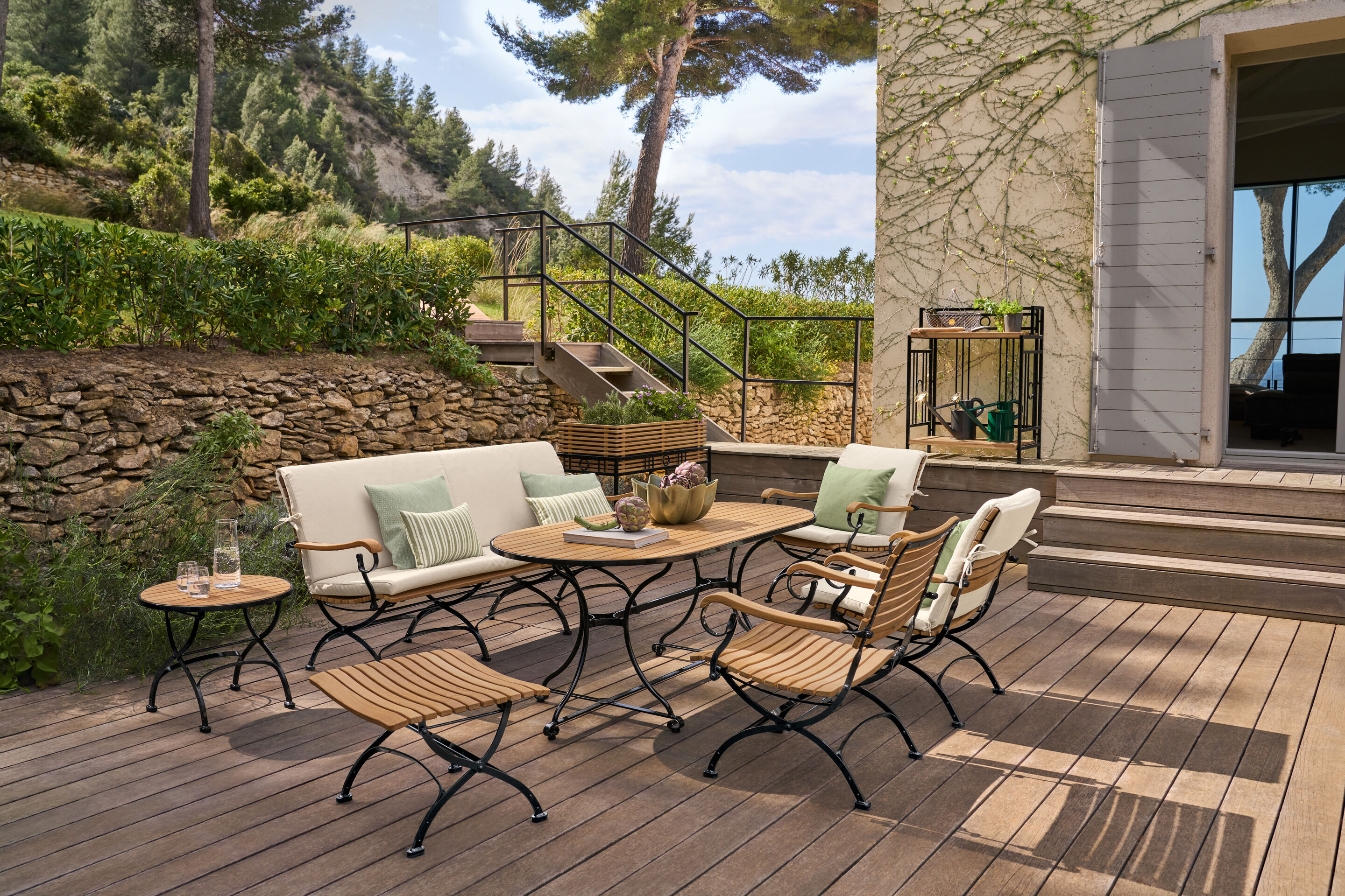 Teak is simply the best and the most endurable wood for furniture which is to remain outdoors indefinitely. It will withstand sun, rain, frost, and snow. Even after years outside in the open air, exposed to all elements, the wood remains stable and maintains its form, changing only in colour. It develops, over the course of time, a noble, silver-grey patina. Its natural beauty will endure for decades; without the help of chemicals. Anything made of teak is truly an heirloom.