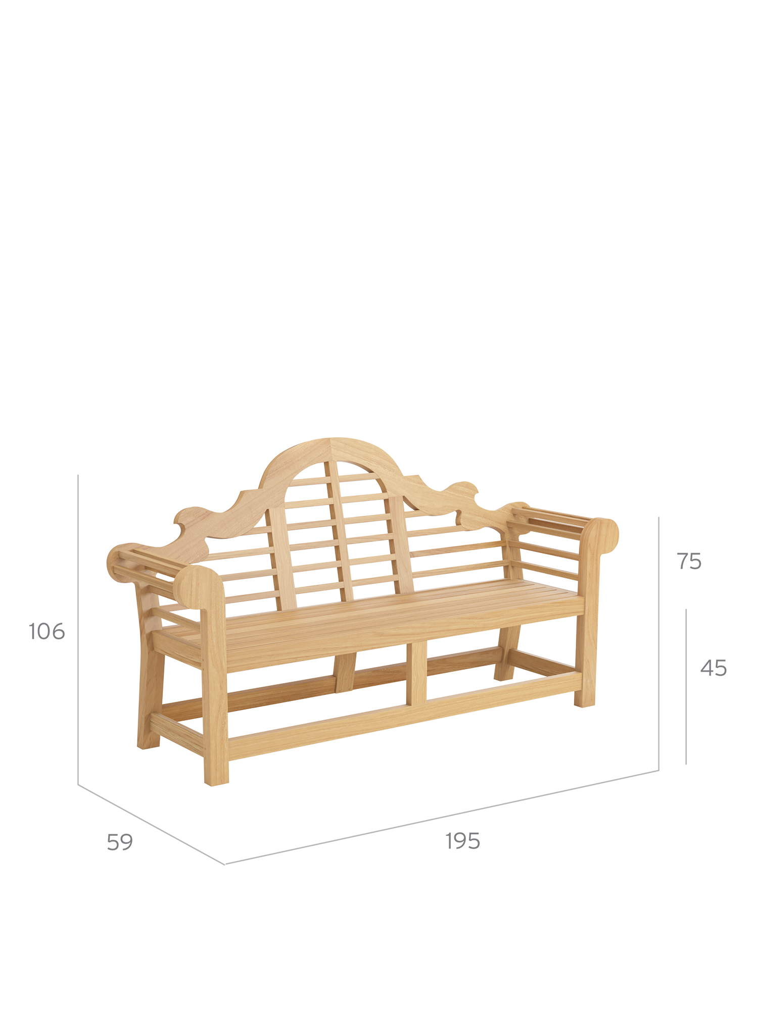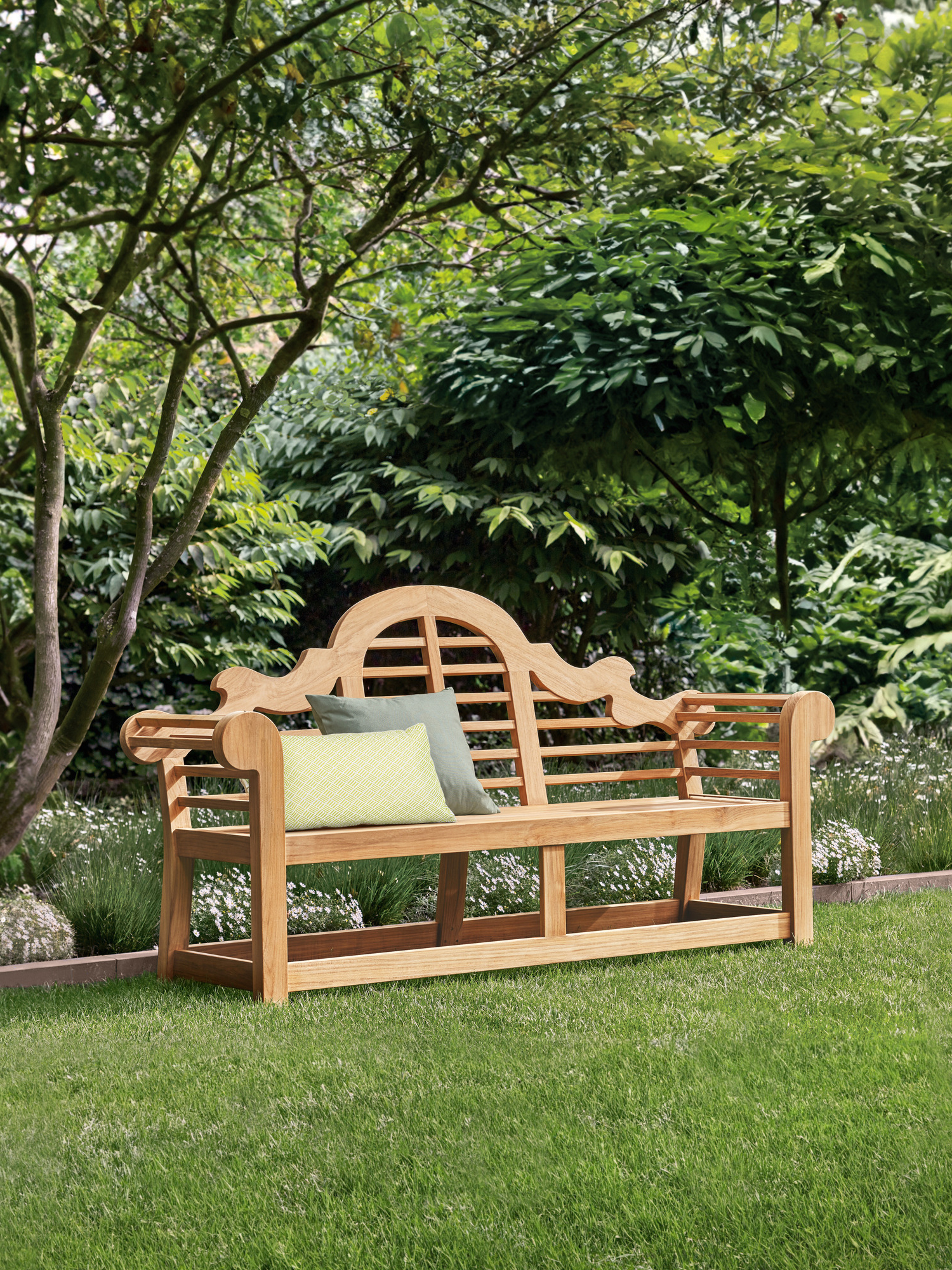 Both imposing and delicate, as majestic as a throne and supremely comfortable, the bench is a graceful ornamentation in chosen spots outdoors. Made of solid teak, a paradigm of longevity, it develops its characteristic silver-grey patina slowly over time. Typical of the great country garden tradition – just like its historical forebears in the famous Sissinghurst Gardens in the county of Kent.