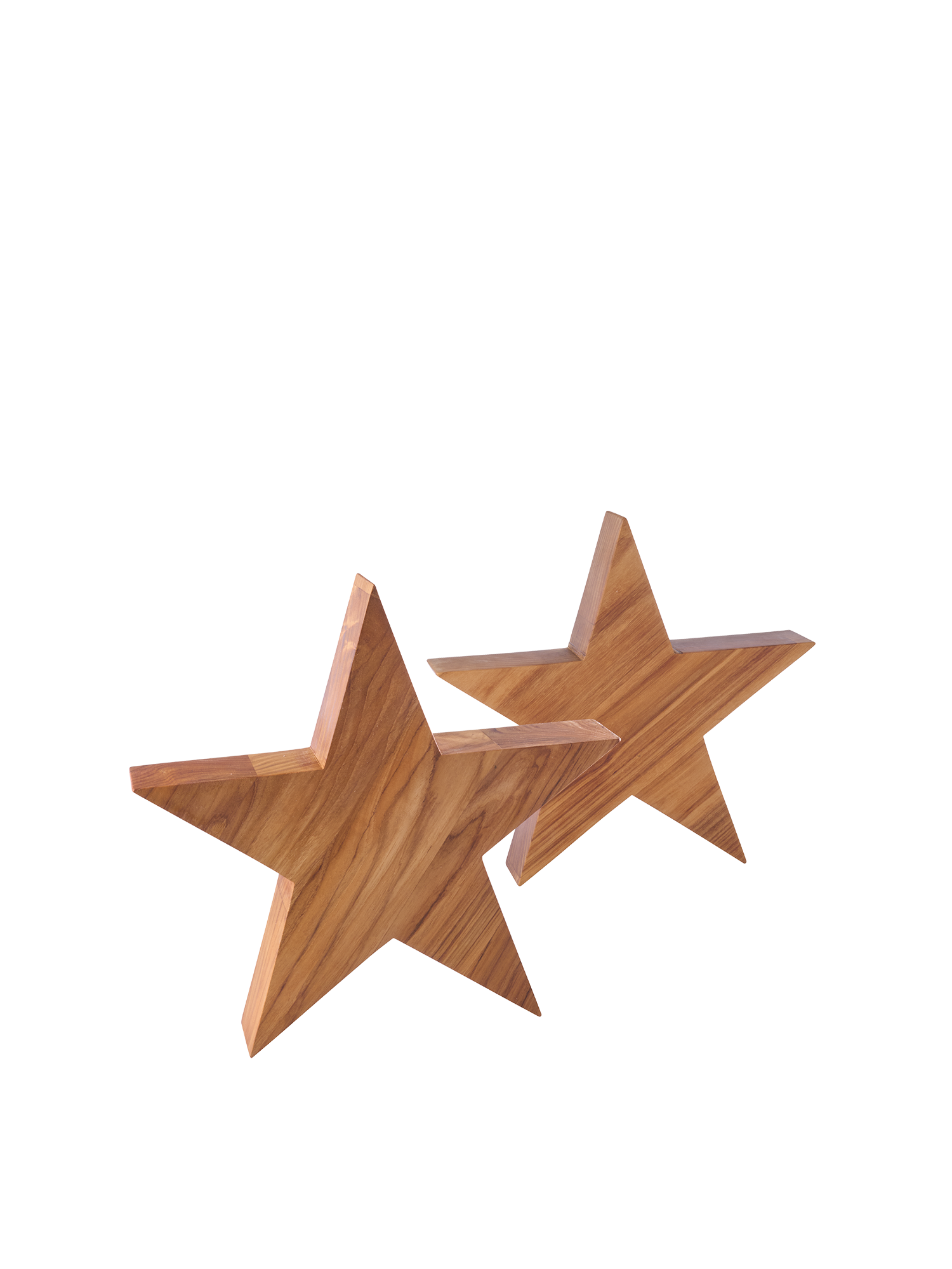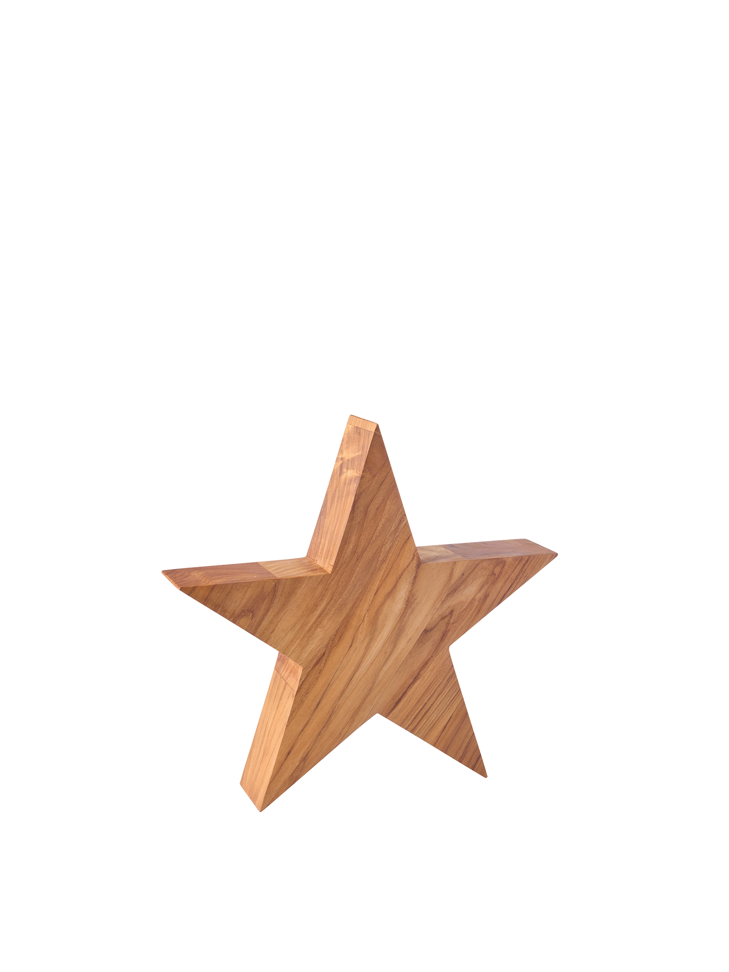 Each star is unique, with an unmistakably natural grain – an eye-catcher in which you can happily lose yourself. Made from pieces of solid teakwood, which due to their irregular grain, cannot be used for the making of furniture, the stars create a festive atmosphere – and make a delightful gift or a special treat for yourself.