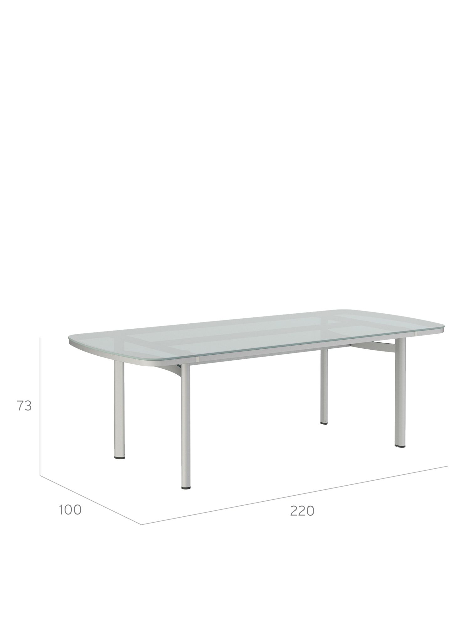 Temper Table Anodised Aluminium/Glass 220 x 100