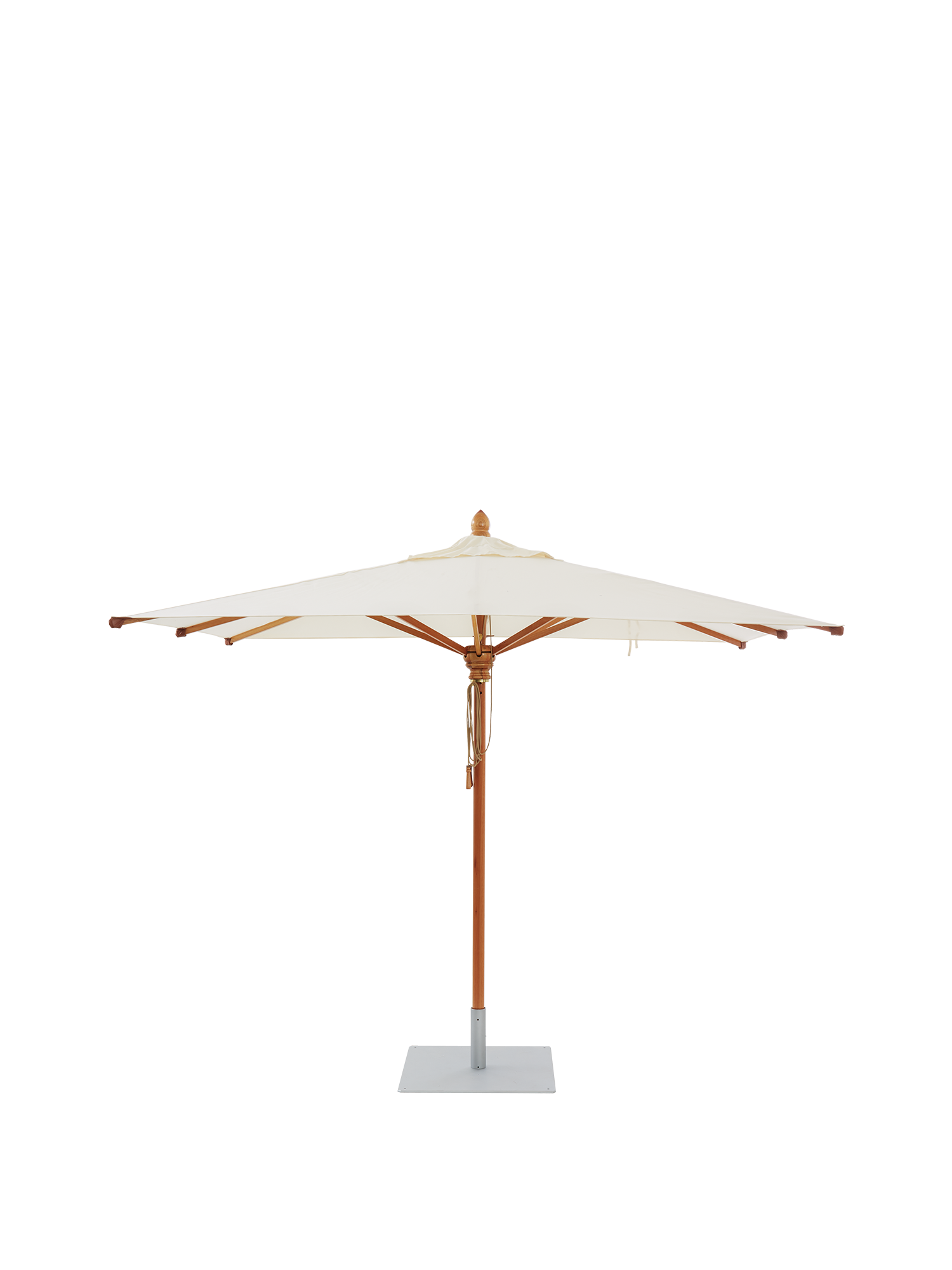 The canopies of our Umbria parasols are of lightly waterproofed polyacrylic and available in the colour Ivory.
