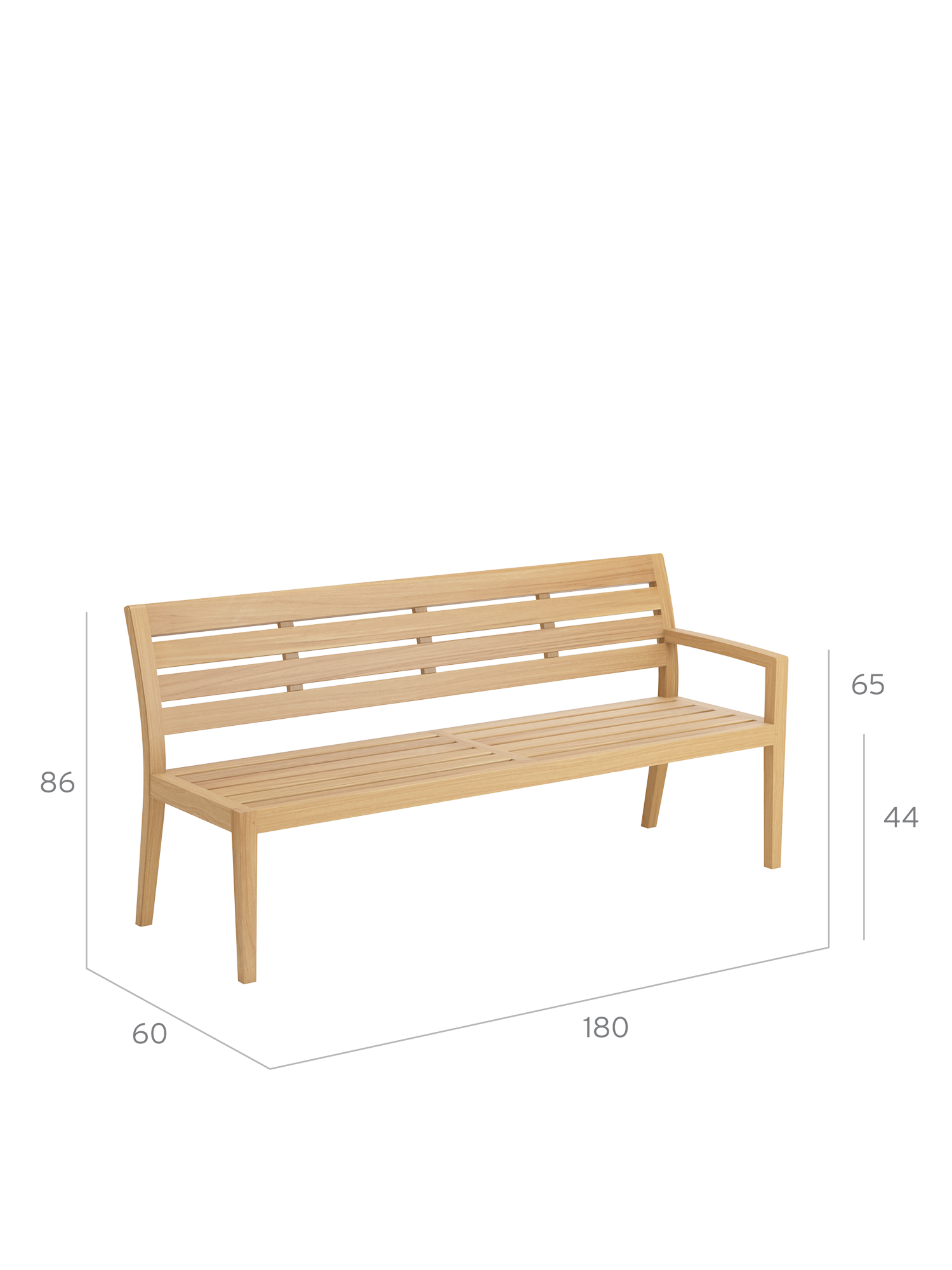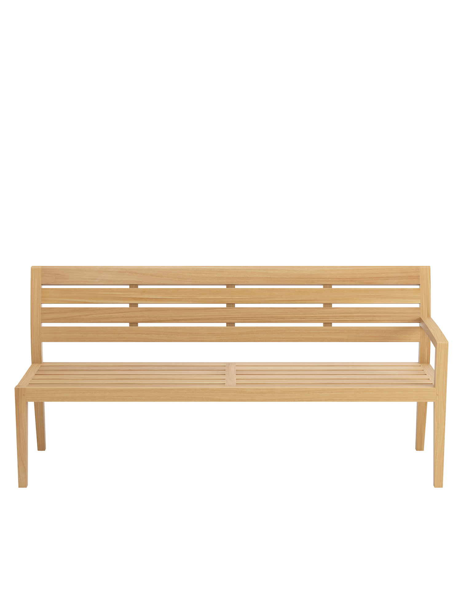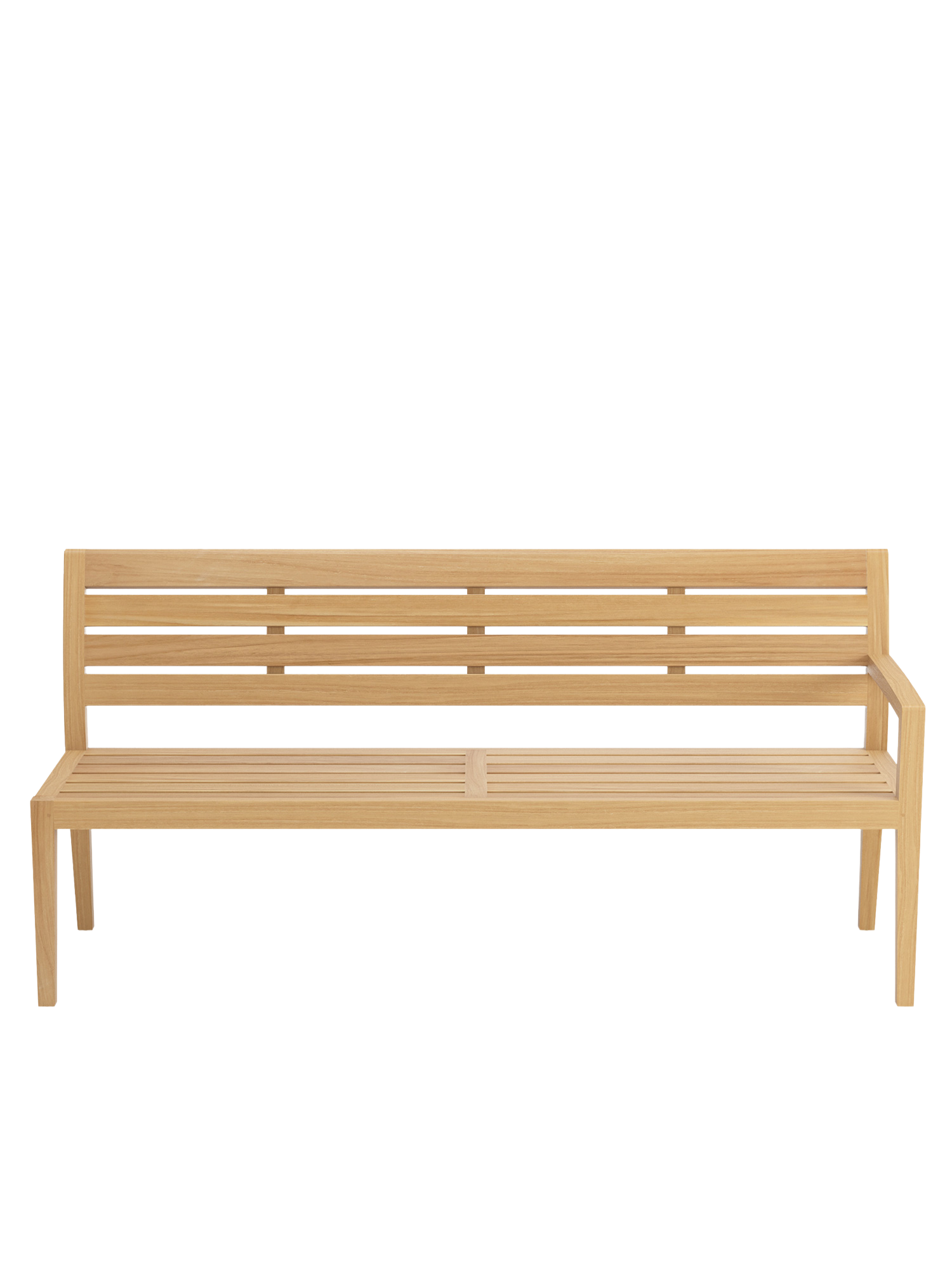 The Valencia bench with an armrest on the left side is part of a modular system and can be combined to form a variety of corner benches.