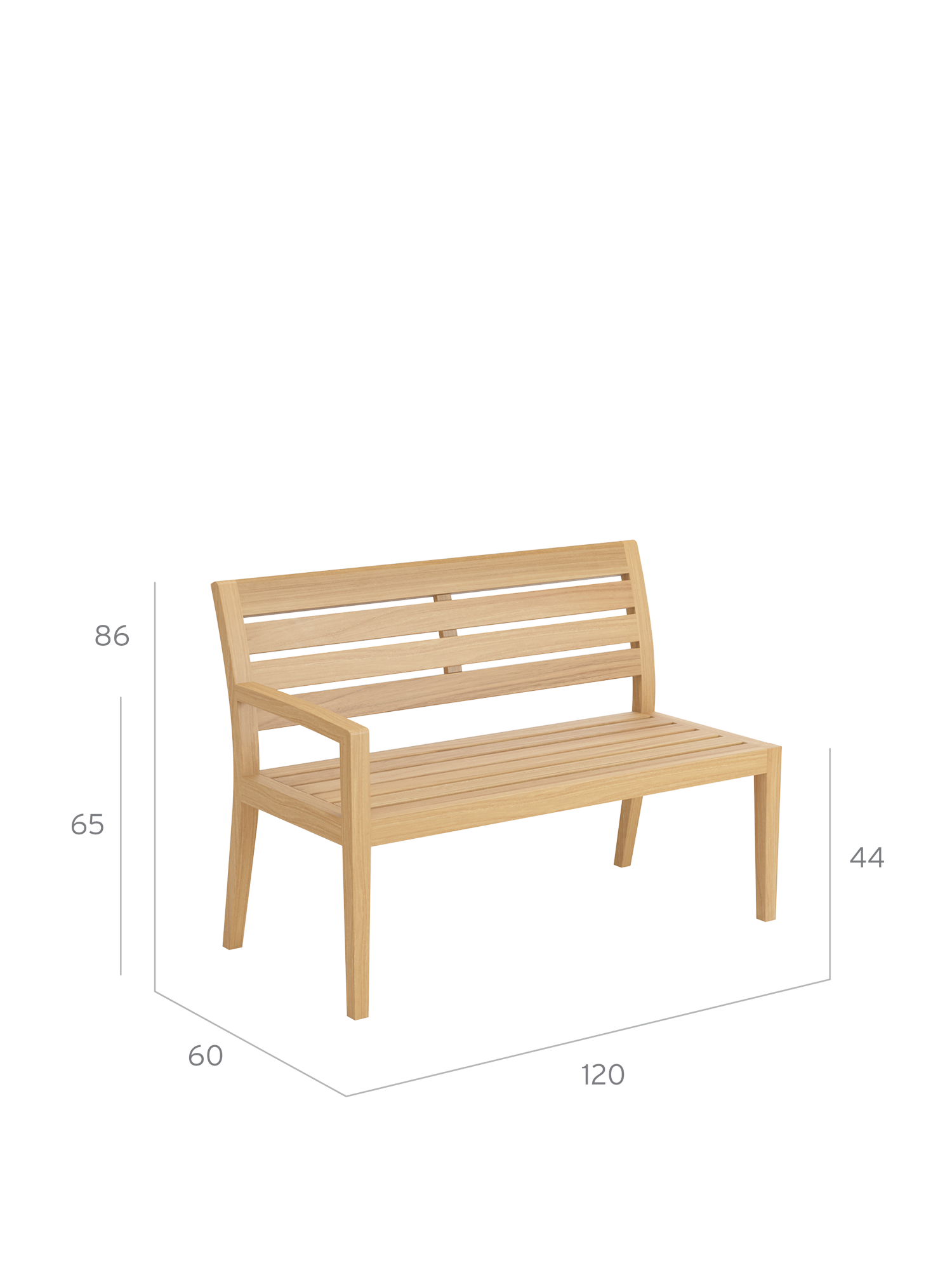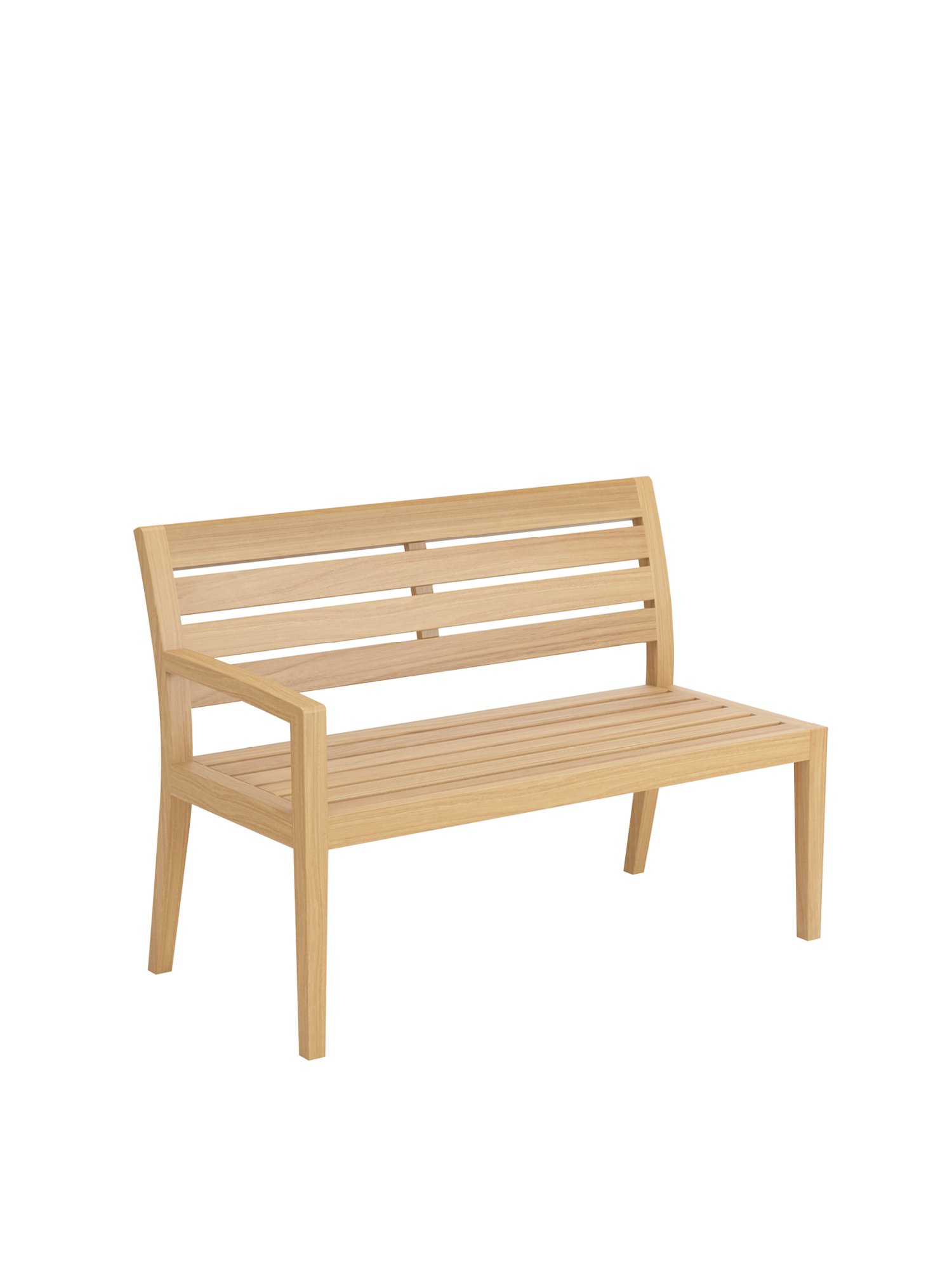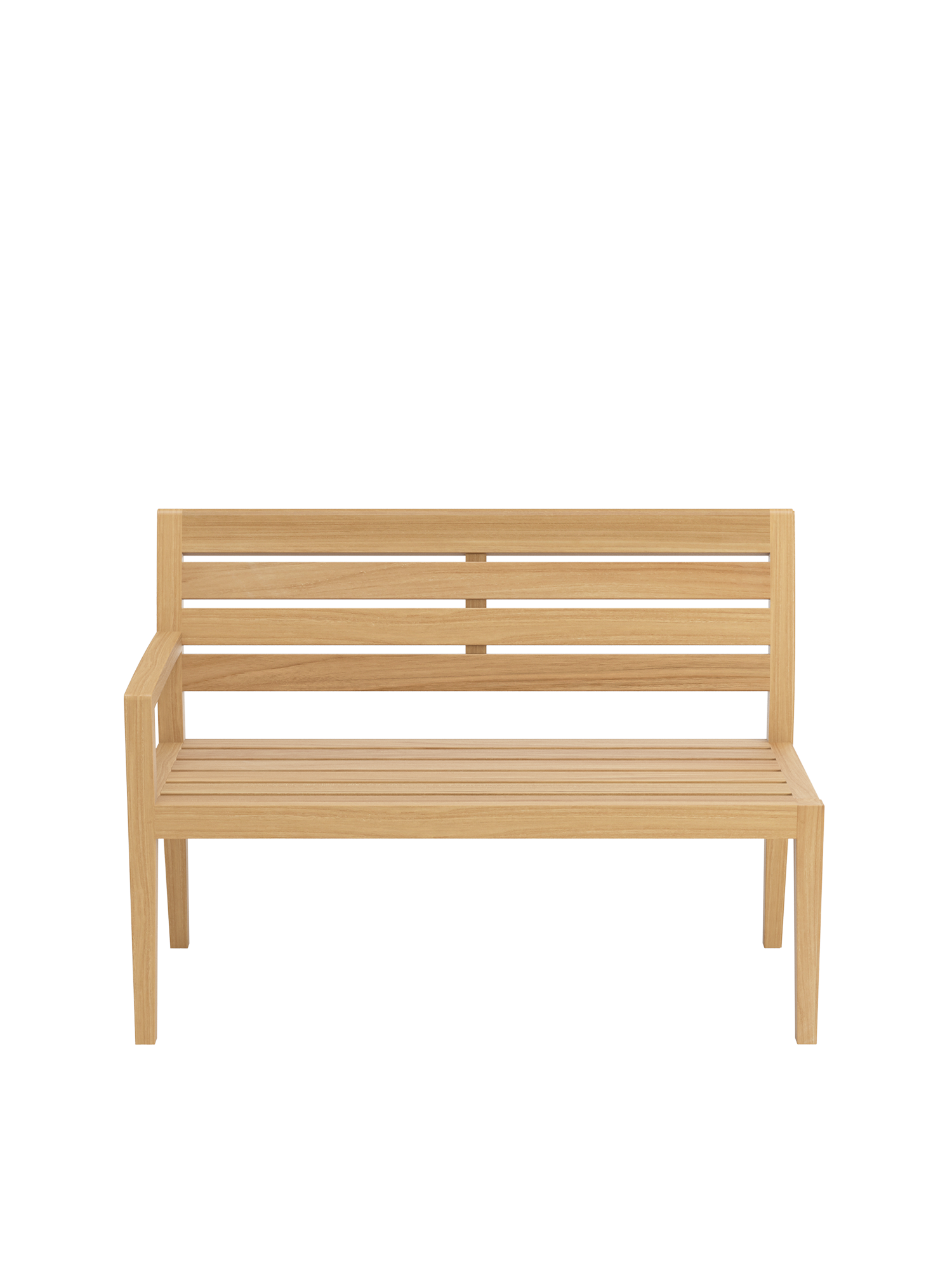 The Valencia bench with an armrest on the right side is part of a modular system and can be combined to create a variety of corner benches.