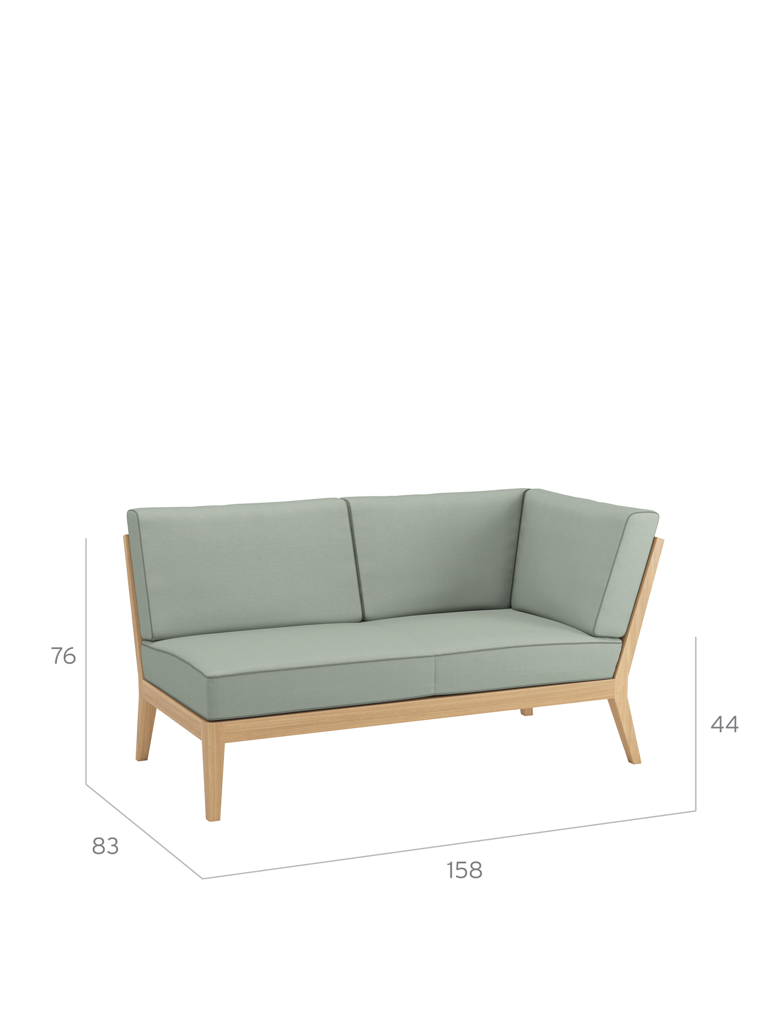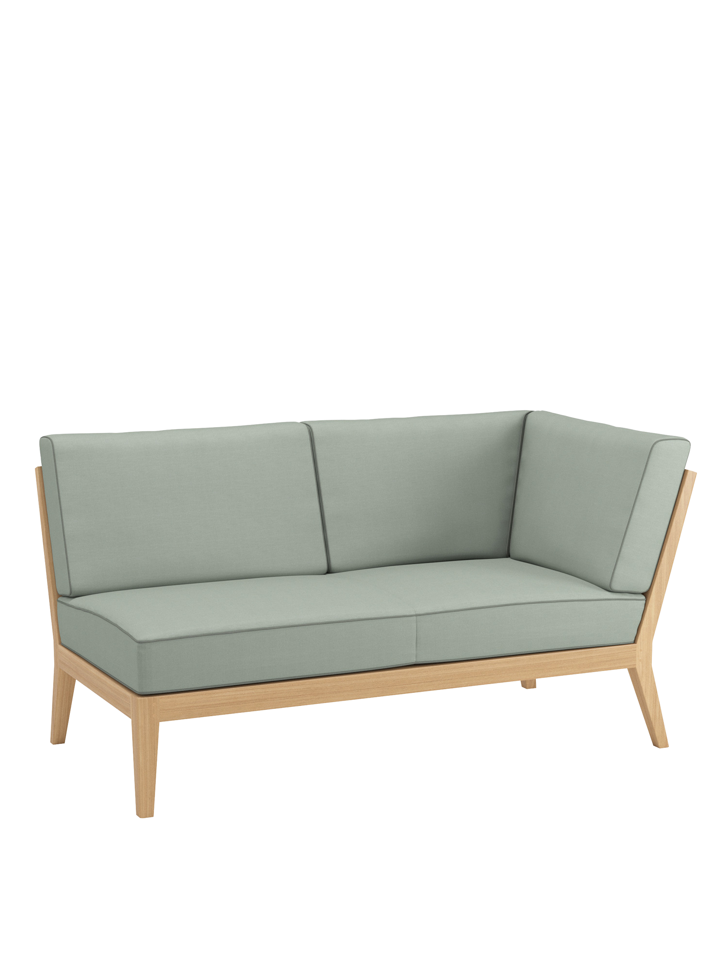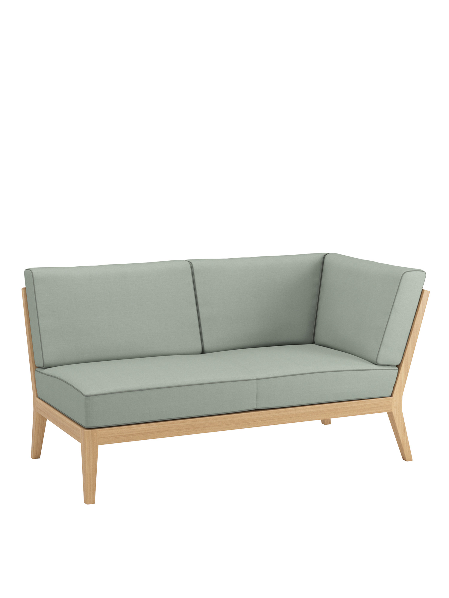 At the side of the pool or edge of the terrace, on a city balcony or in the middle of the garden: the elements of the Valencia lounge furniture create an oasis of tranquillity in every airy location of adequate size. Extra wide and especially deep, chaise longues, middle elements and corner modules made of teak with angled legs, and transversely aligned seat and backrest slats, offer plenty of space for relaxing. Thick upholstery with welted seams and feather cushions in fresh colours set summery accents.