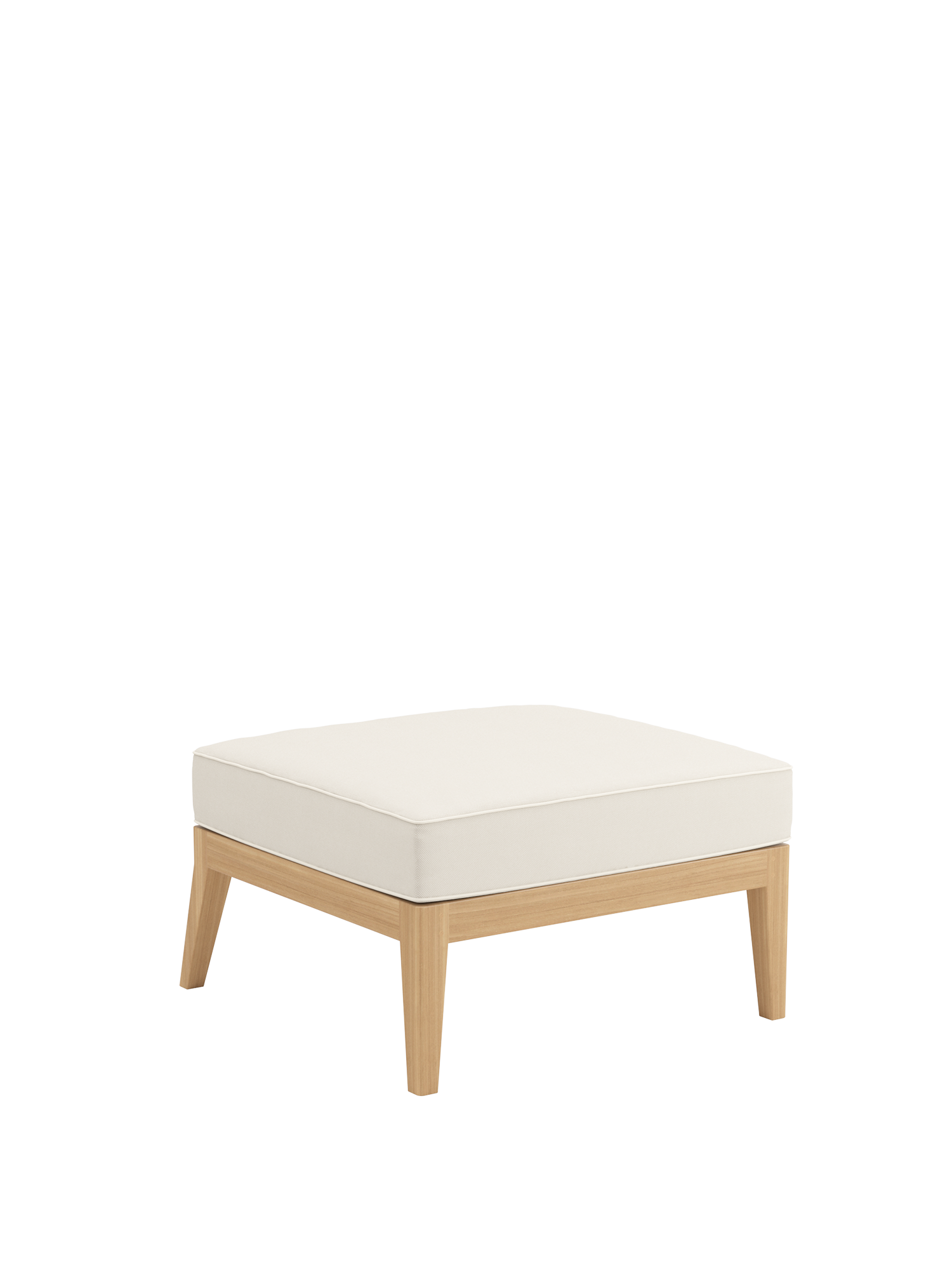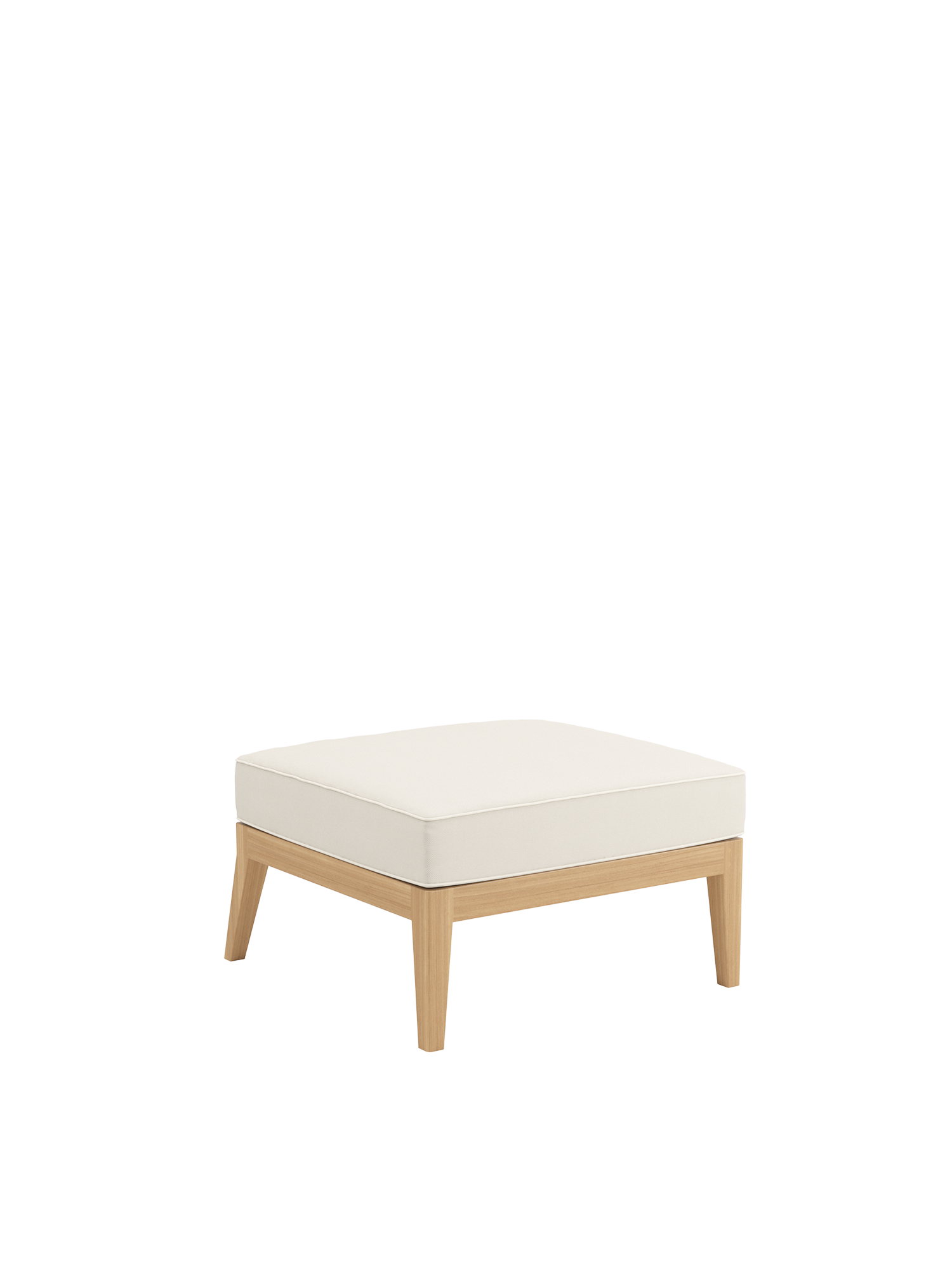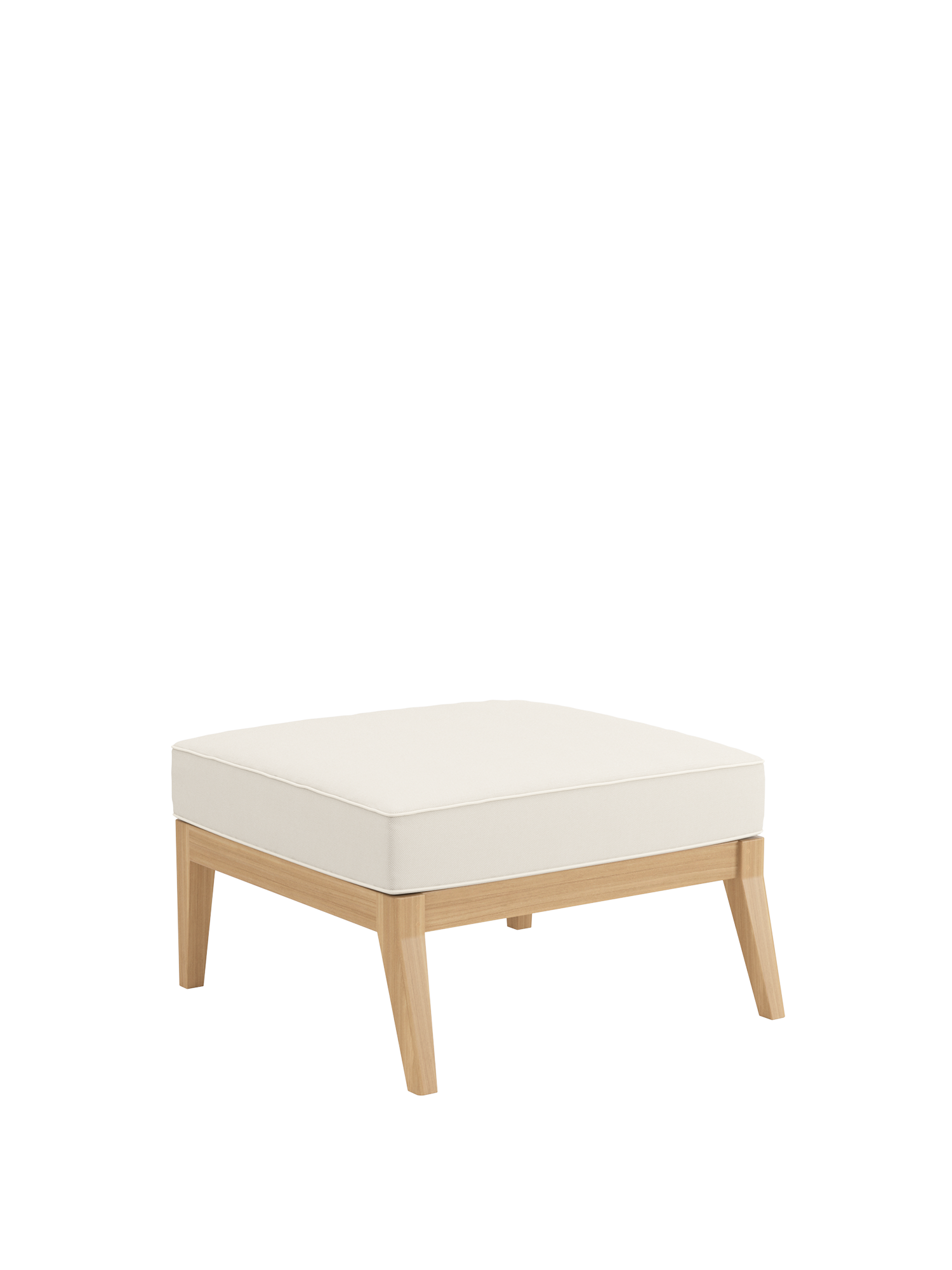 At the side of the pool or edge of the terrace, on a city balcony or in the middle of the garden: the elements of the Valencia lounge furniture create an oasis of tranquillity in every airy location of adequate size. Extra wide and especially deep, chaise longues, middle elements and corner modules made of teak with angled legs, and transversely aligned seat and backrest slats, offer plenty of space for relaxing. Thick upholstery with welted seams and feather cushions in fresh colours set summery accents.