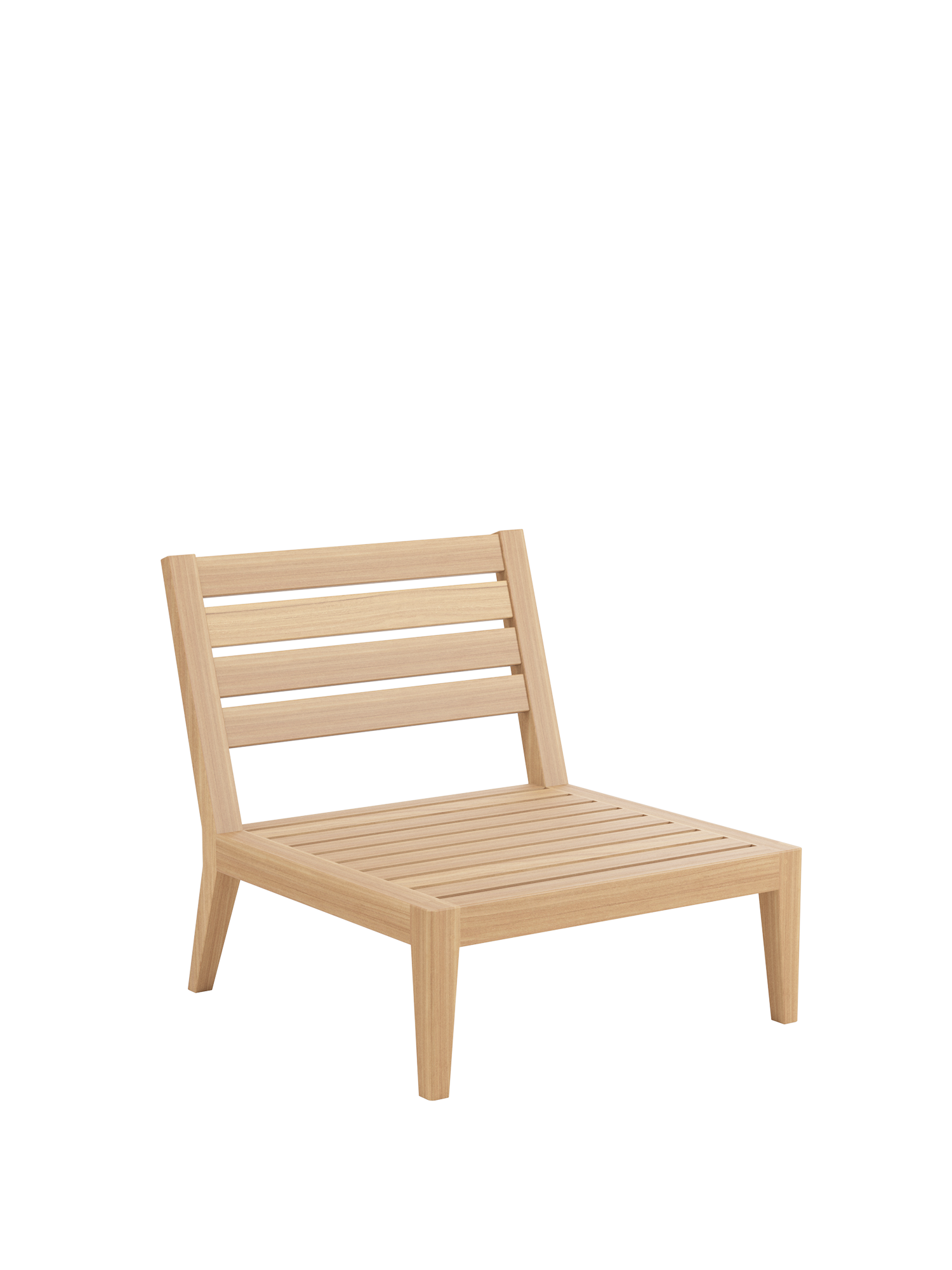 At the side of the pool or edge of the terrace, on a city balcony or in the middle of the garden: the elements of the Valencia lounge furniture create an oasis of tranquillity in every airy location of adequate size. Extra wide and especially deep, chaise longues, middle elements and corner modules made of teak with angled legs, and transversely aligned seat and backrest slats, offer plenty of space for relaxing. Thick upholstery with welted seams and feather cushions in fresh colours set summery accents.