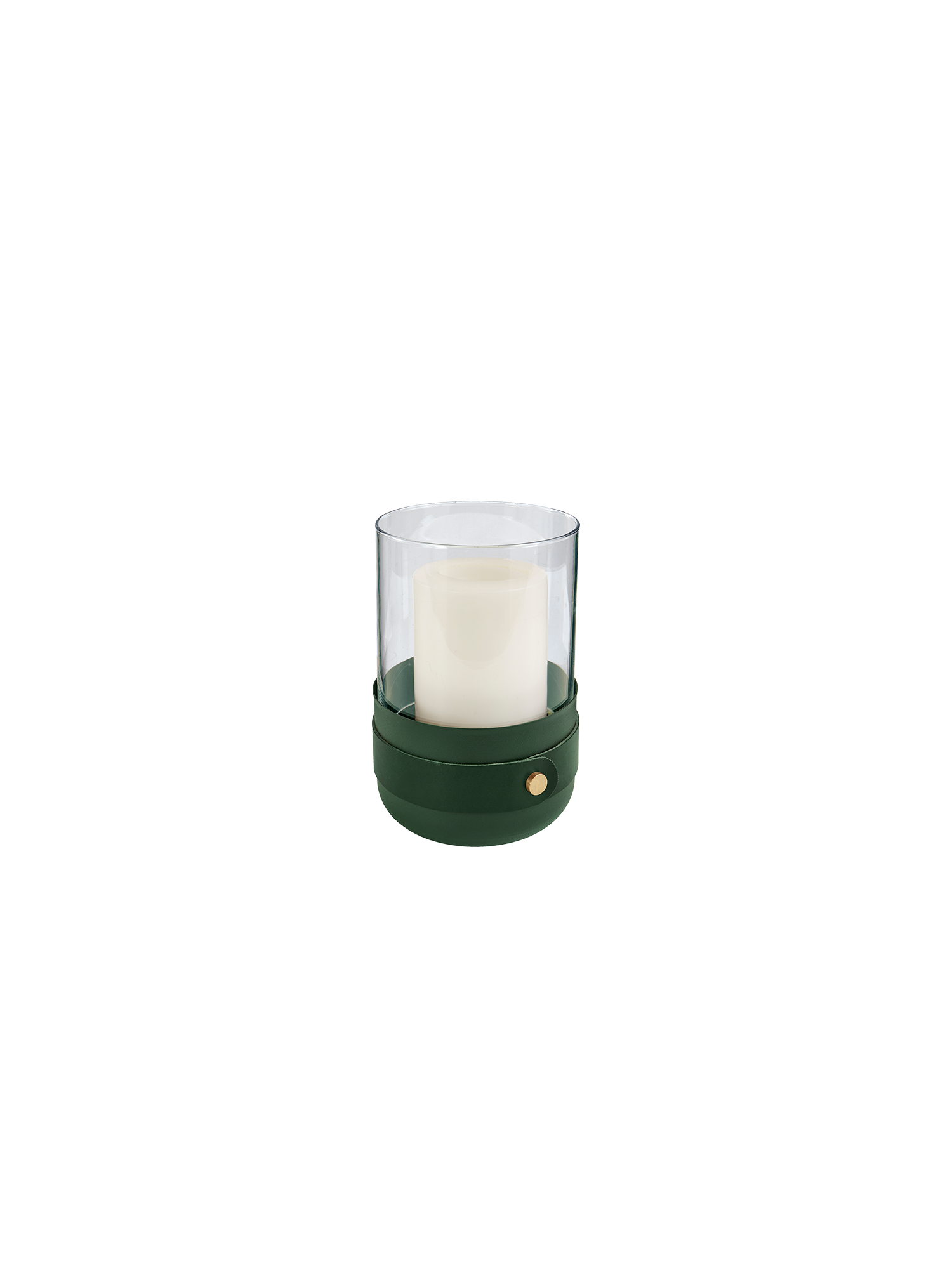 The Vero lantern is crafted from powder-coated metal and clear glass. A durable cowhide leather strap adds a stylish accent, and a matching candle is included. The lantern is not suitable for permanent outdoor use.