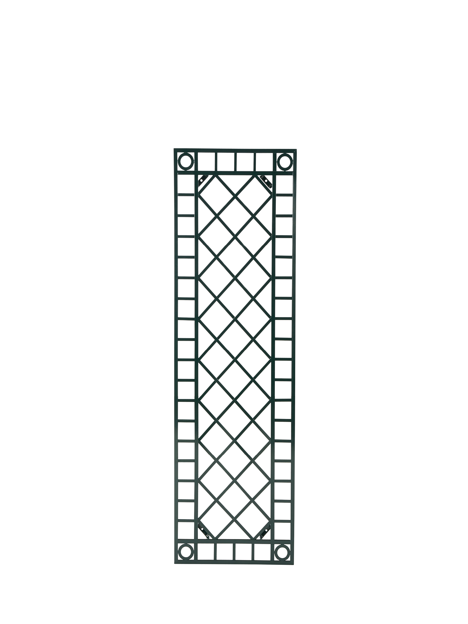An elegant plant support to beautify a wall. The wall trellis is of weatherproof aluminium with dark green powder-coating. Strong mounting at the back ensures the right distance from the wall, providing the plant with air as well as grip. The trellises are available in two widths. Please note that mounting cannot be undertaken by our forwarding agent.